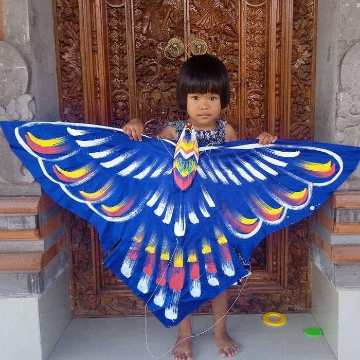 Layangan Burung Kite With Bird Character Mainan Anak Lukis Handmade Bali - Hitam