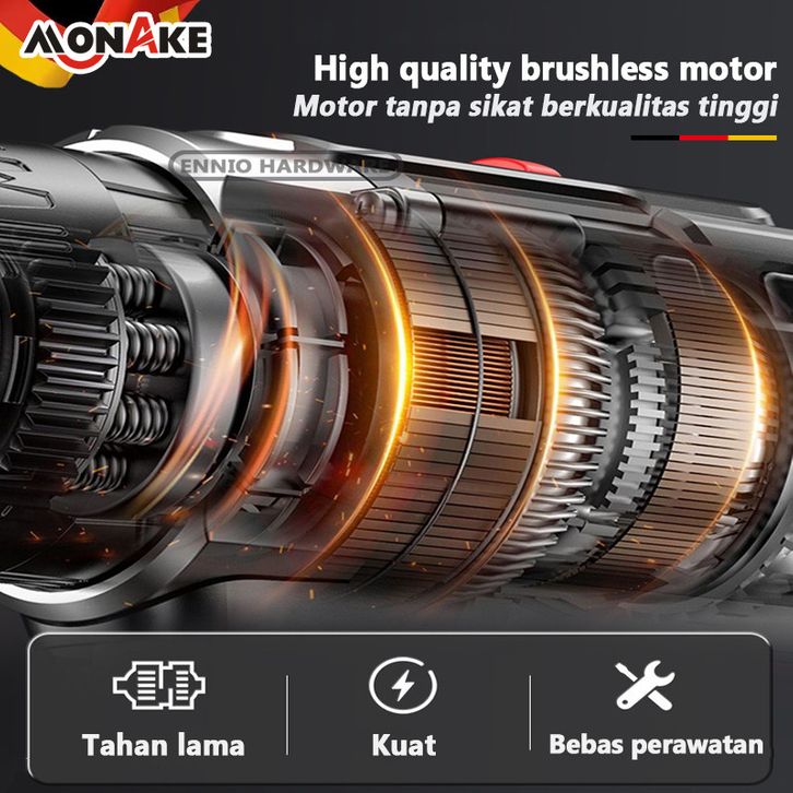 Mesin Bor Litrik Tanpa Kabel Impact Drill 12/12V/36V-3 Cordle Baterai Portabel with Li-ion Batterie MONAKE 1