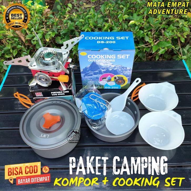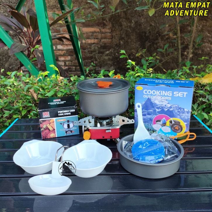 Paket Camping Kompor Windproof Mawar K203 Kompor Kotak K202 + Cookingset DS308 DS200 Murah