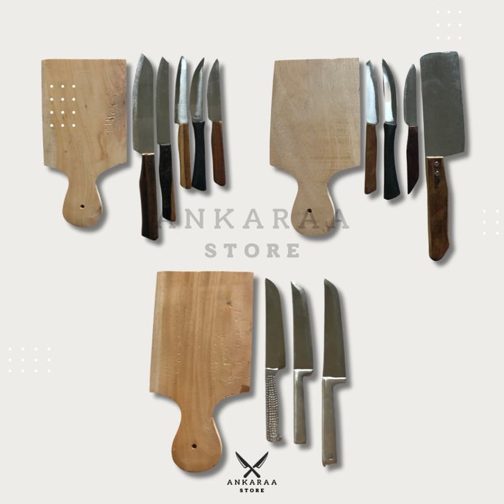 PROMO Pisau Set Isi 5 Bonus Talenan Kayu / Pisau Dapur Set / Pisau Grosir efimnmn
