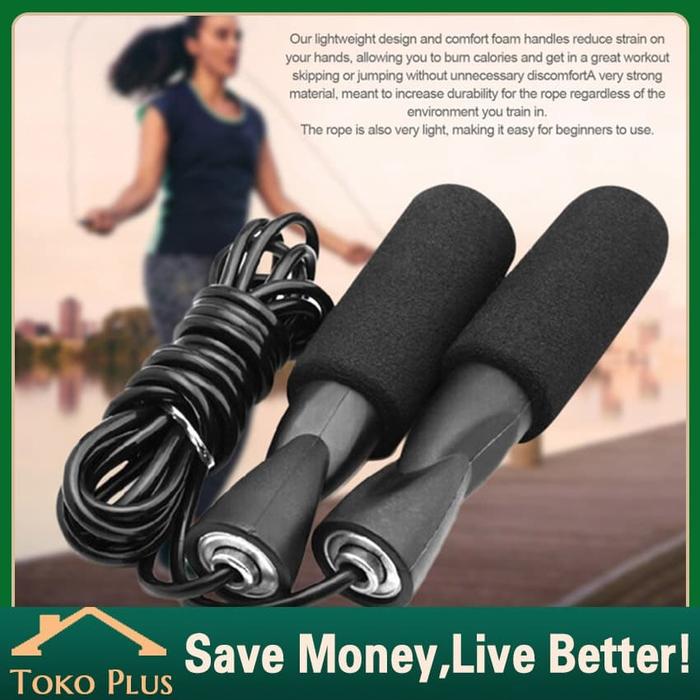 TERLARIS 3M TALI SKIPPING PANJANG BISA DIATUR JUMP ROPE SKIPPING ROPE FOAM HITAM