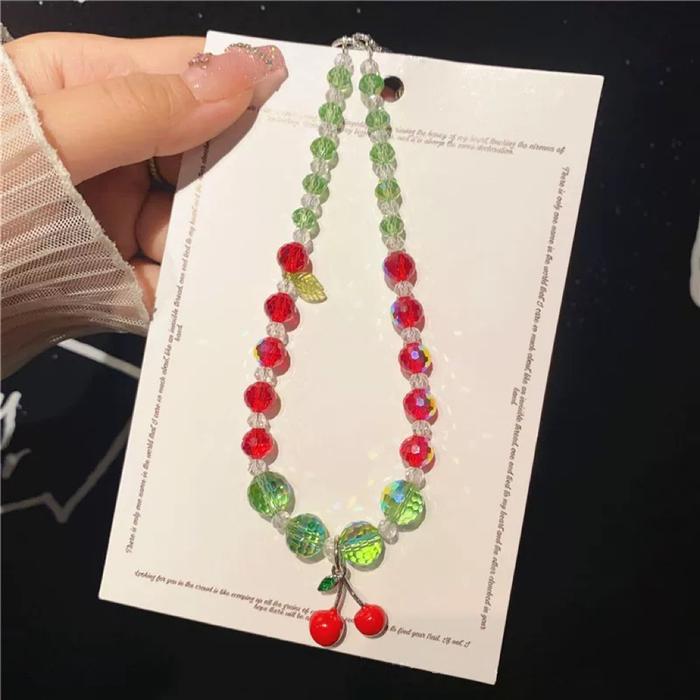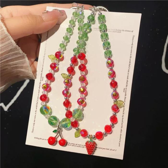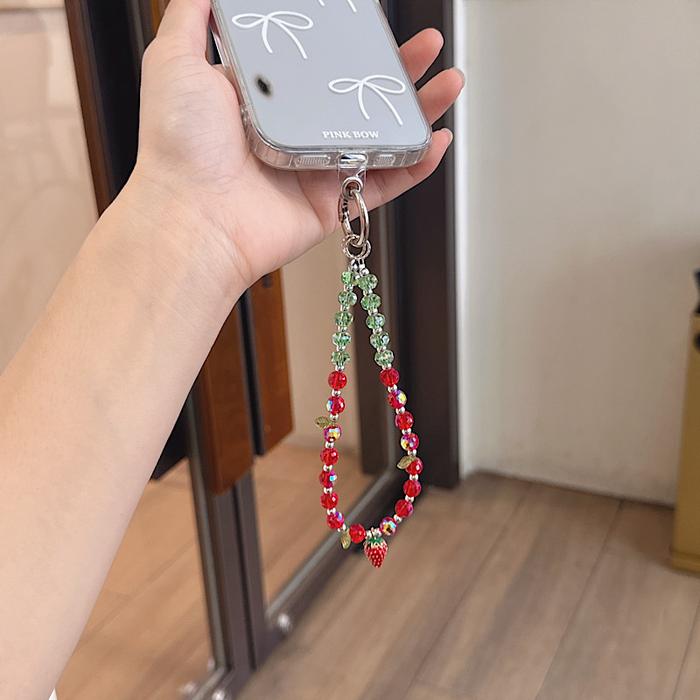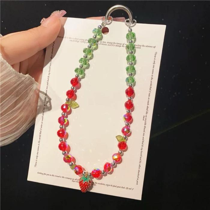 FLASH SALE TALI GANTUNGAN RANTAI HP KRISTAL GAYA CHERY & STRAWBERRY CUTE STYLE UNIVERSAL LANYARD CHERY