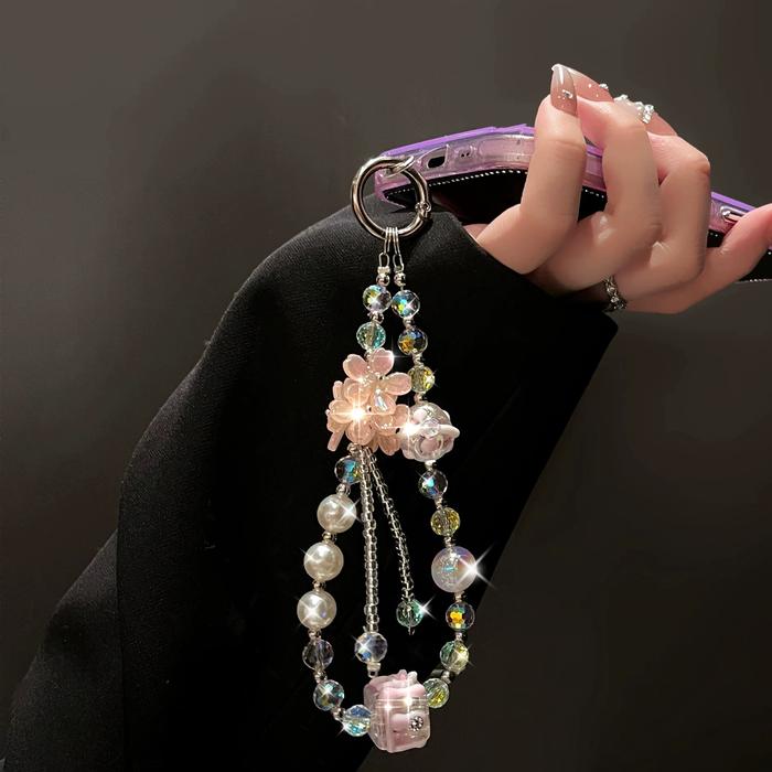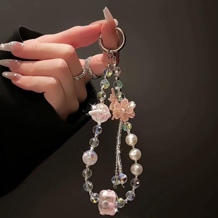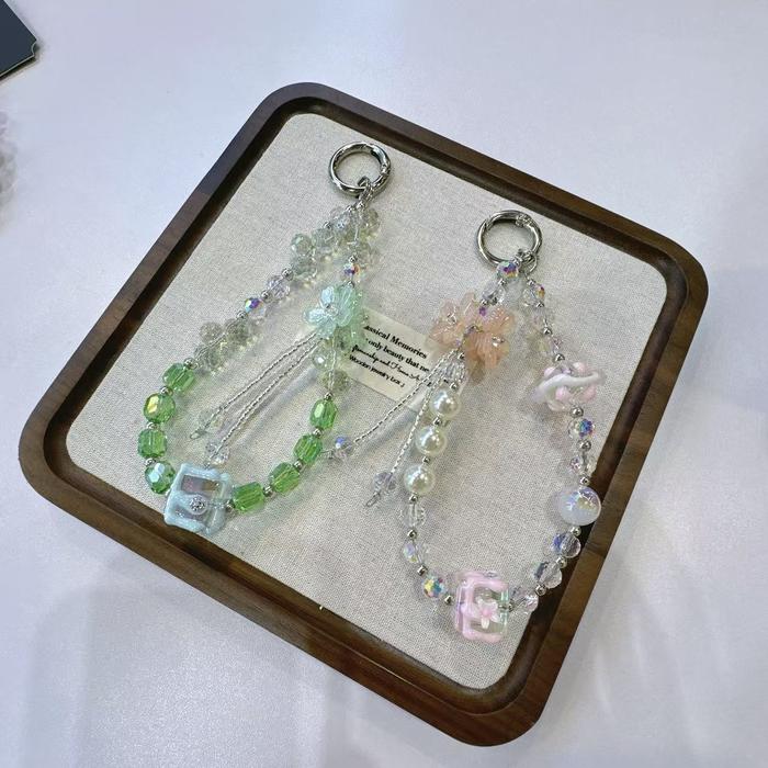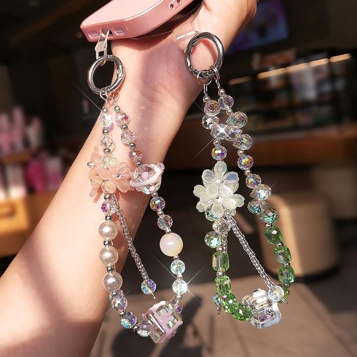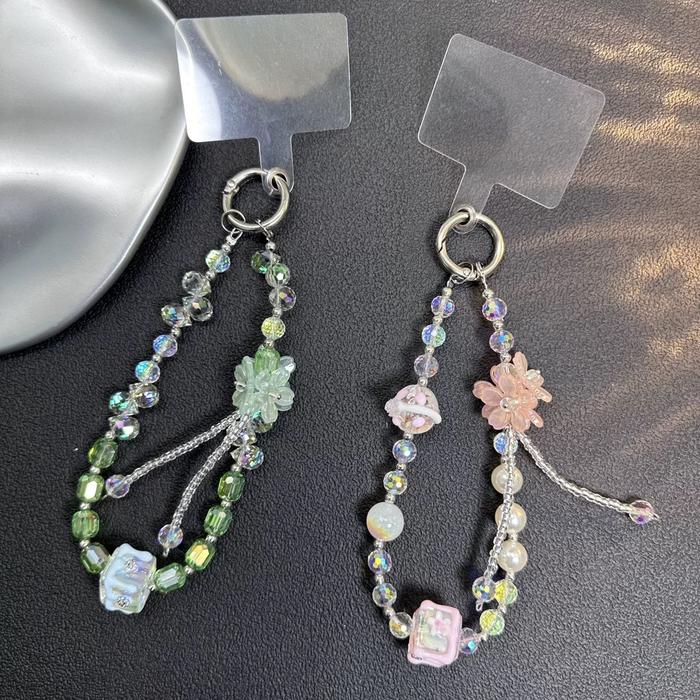 FLASH SALE GANTUNGAN RANTAI PONSEL BOLA KRISTAL MANIK INS STYLE MUTIARA TALI PERGELANGAN TANGAN LUCU HIJAU