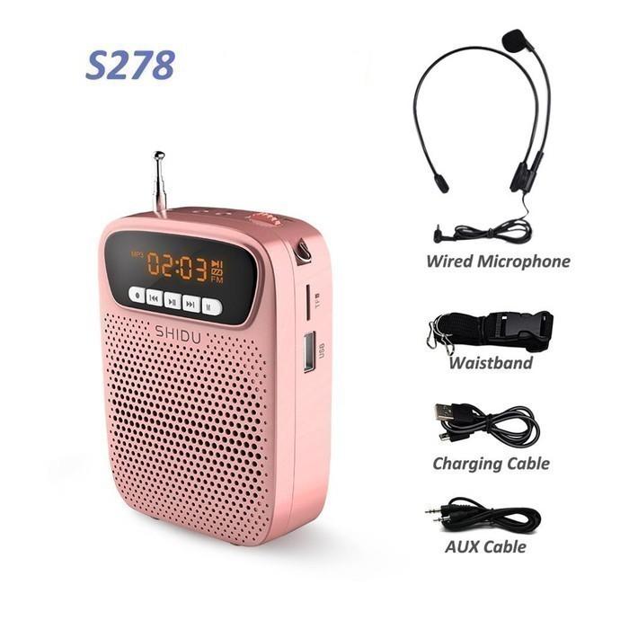 TERLARIS SHIDU S278 MULTIFUNCTION VOICE AMPLIFIER PORTABLE FM RADIO SPEAKER MERAH MUDA