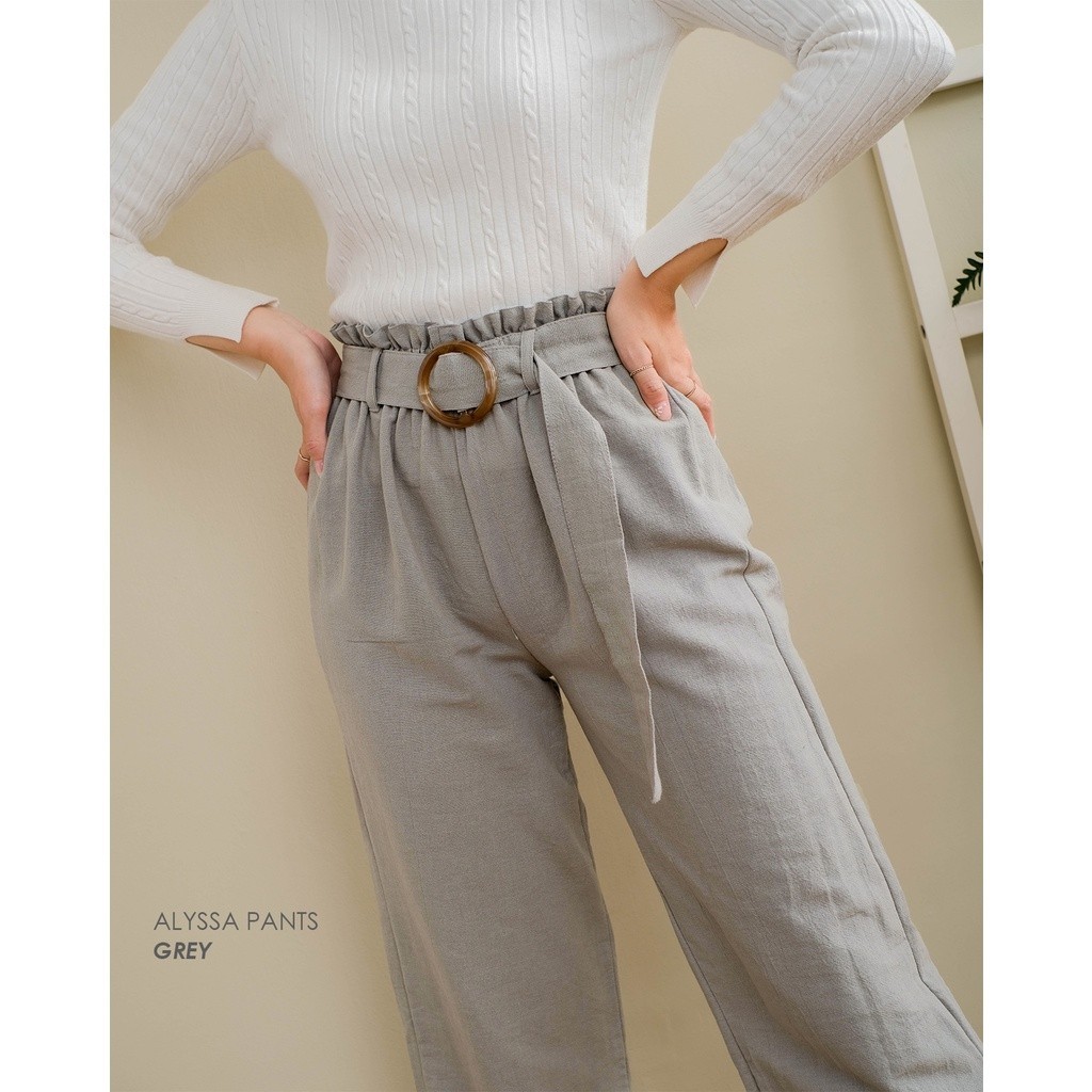 Mayoutfit Alyssa Pants | Celana Kulot Linen Free Belt Original Best Seller Official Store
