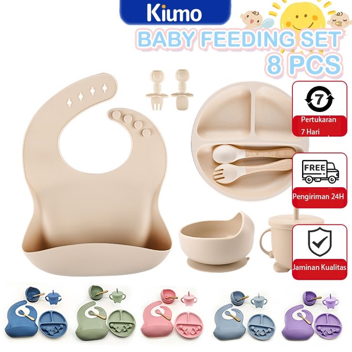 KIUMO Alat makan bayi set 5 6 8pcs Alat pemberian makanan tambahan untuk anak anak Peralatan makan silikon