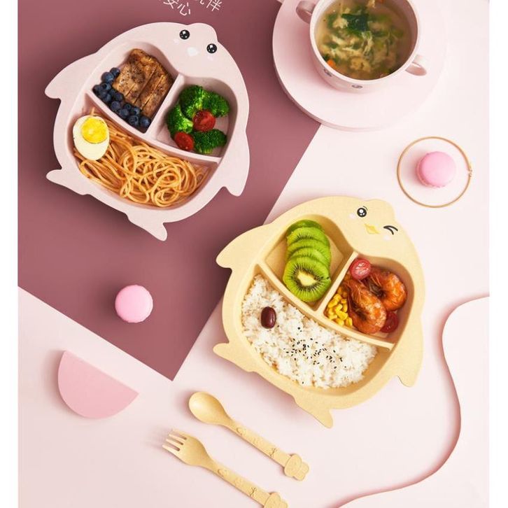 PERALATAN MAKAN ANAK TERMURAH BABY MPASI TEMPAT MAKAN SET TEMPAT PIRING Bahan Jerami Wheat Straw Tableware Kartun lucu