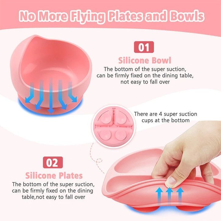 COOKGLORY Set makan bayi bib silikon mangkuk anak sendok garpu dengan sendok peralatan bayi