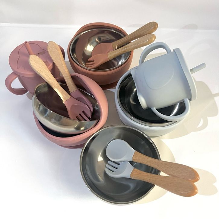 Lunch Set Suction Bowl Silicone Mangkok Silikon Stainless Bowl Mangkok Stainless Anak Alat Makan MPASI One Tone Color