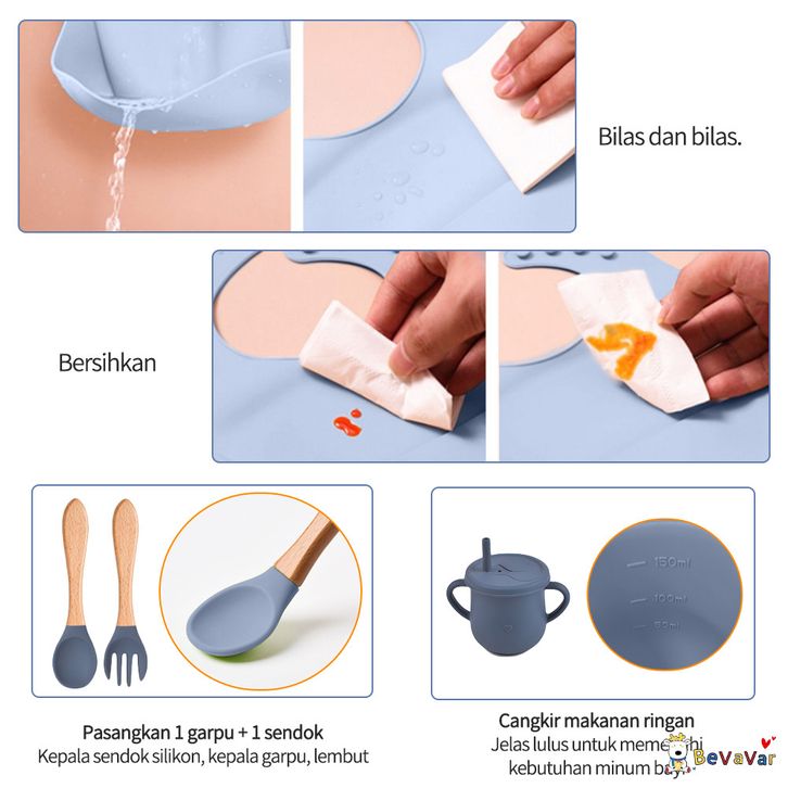BEVAVAR Peralatan Makan Bayi Silicone Alat Tempat Makan Bayi 6PCS Set