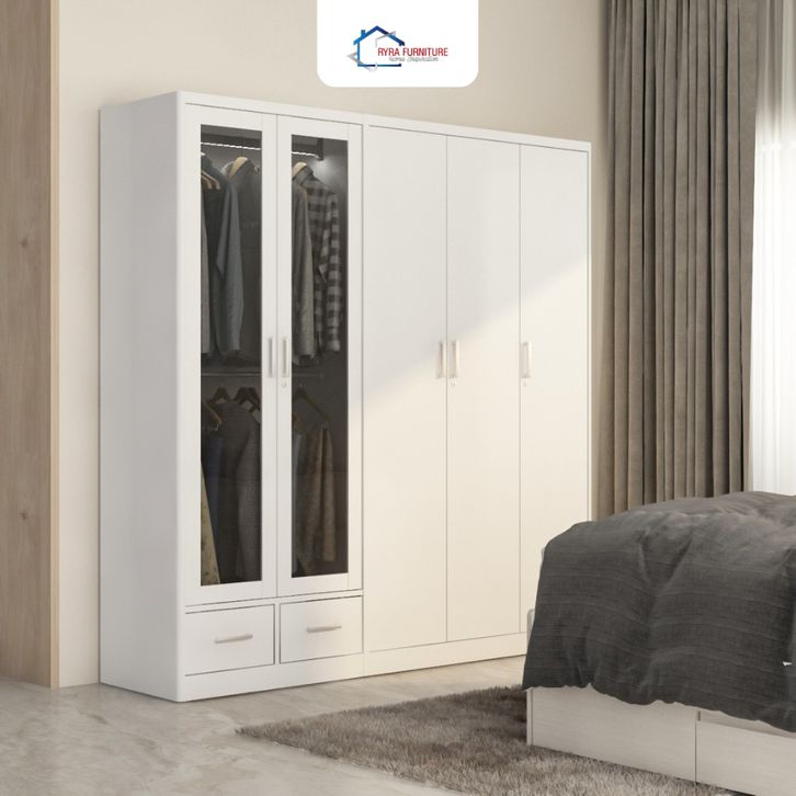 PRODESIGN - SPIEGEL 5P FGD MWD LEMARI PAKAIAN BESI 5 PINTU DENGAN LACI DAN LED WHITE GLOSSY