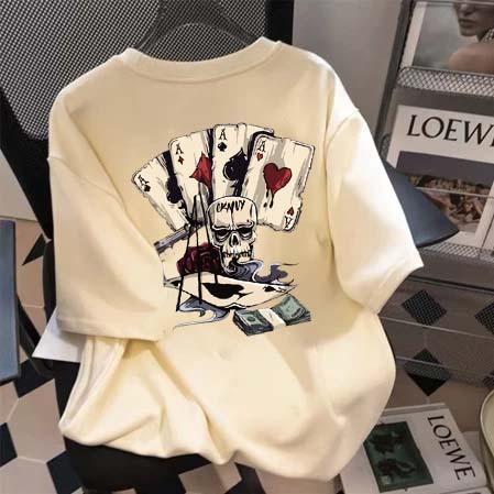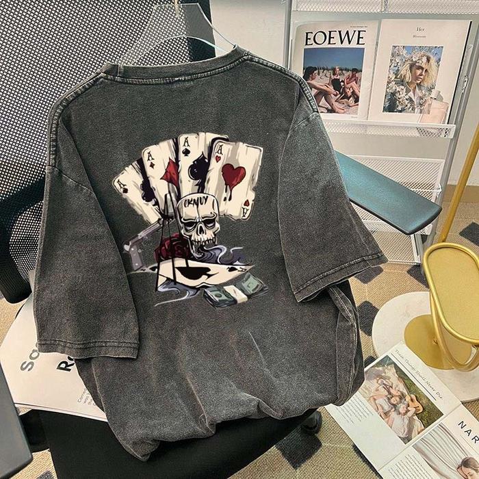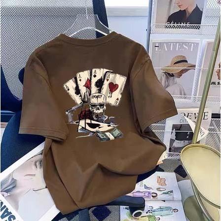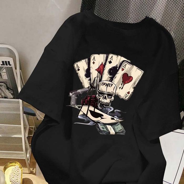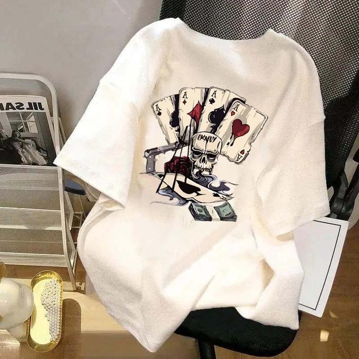 KK Amerika bermain kartu Tren Korea sederhana Gaya kaos pria wanita T-shirt baju oversize distro retro kerangka