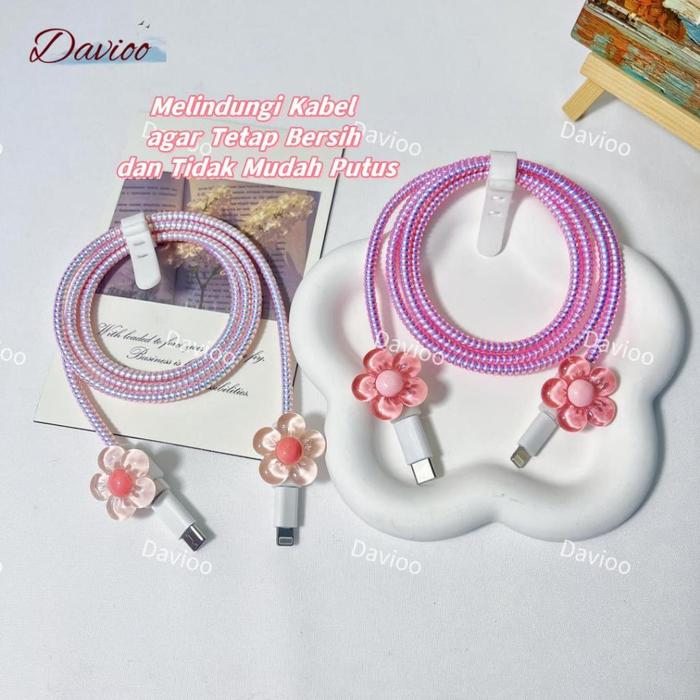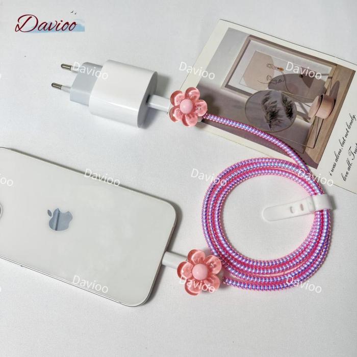 FLASH SALE 1 SET 4 ITEM PELINDUNG KABEL CARGER UNIVERSAL MOTIF BUNGA PELINDUNG KABEL DATA KAWAT KABEL DATA HP FOR IPHONE SAMSUNG