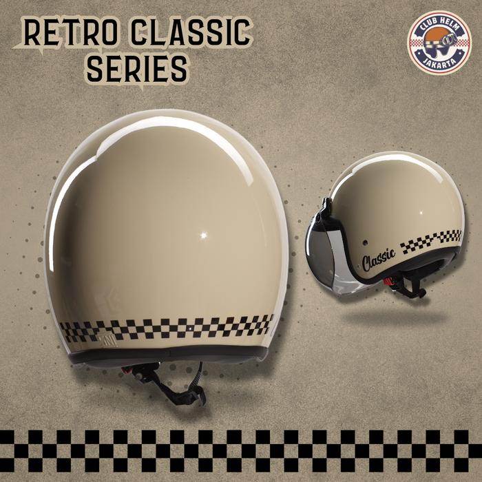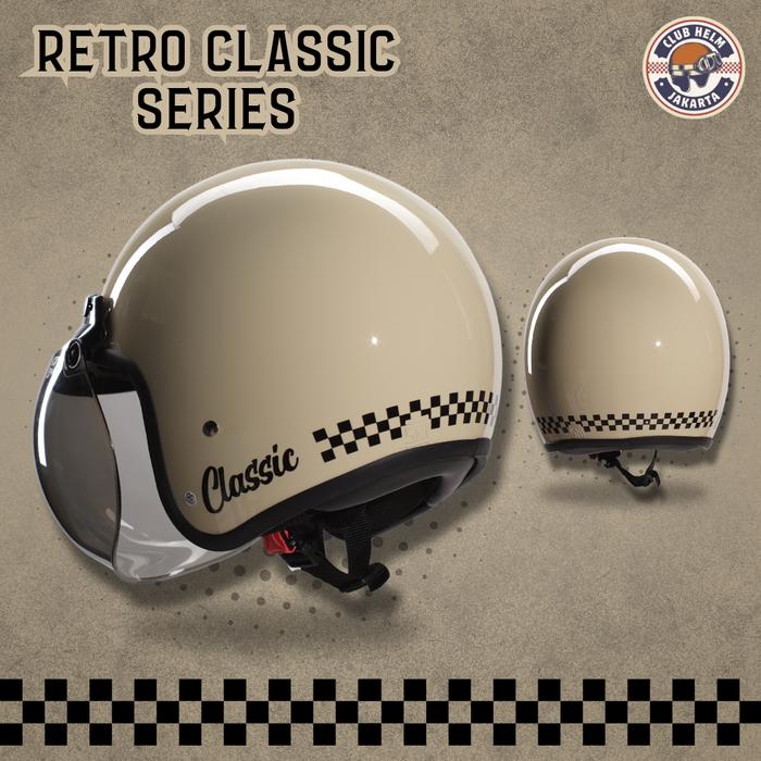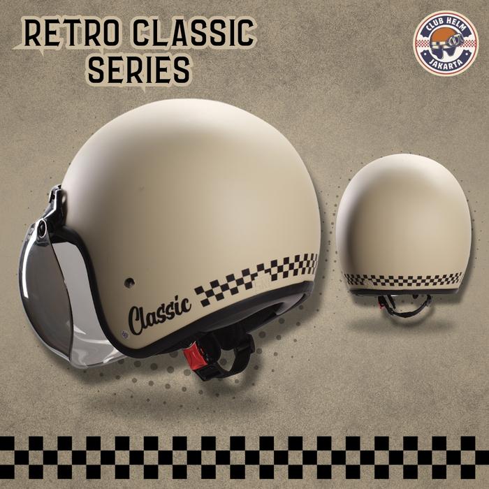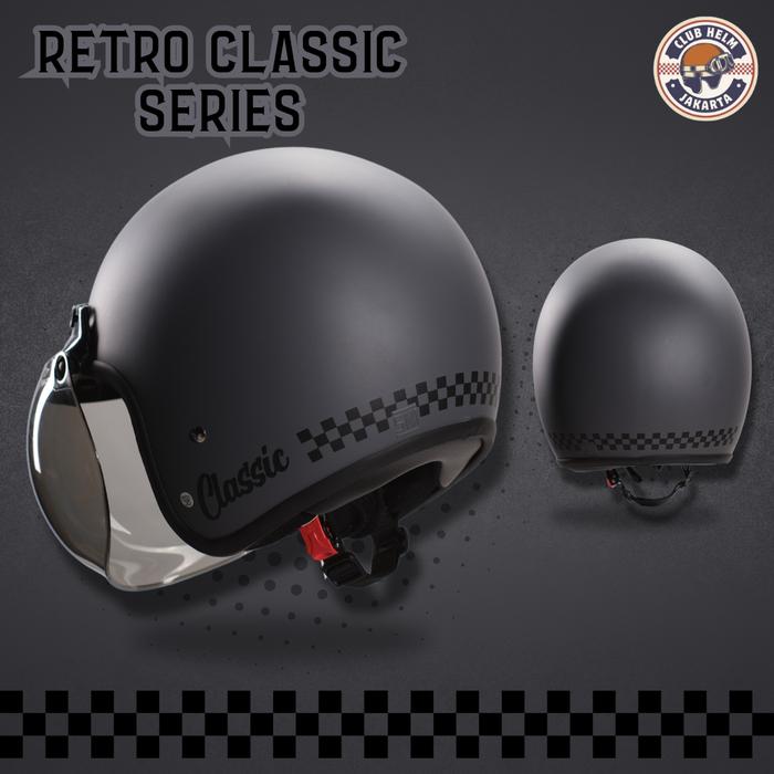 PROMO TERBATAS HELM BOGO RETRO CLASSIC CHECKERBOARD CHECKER KOTAK HITAM DOFF TANPA KACA
