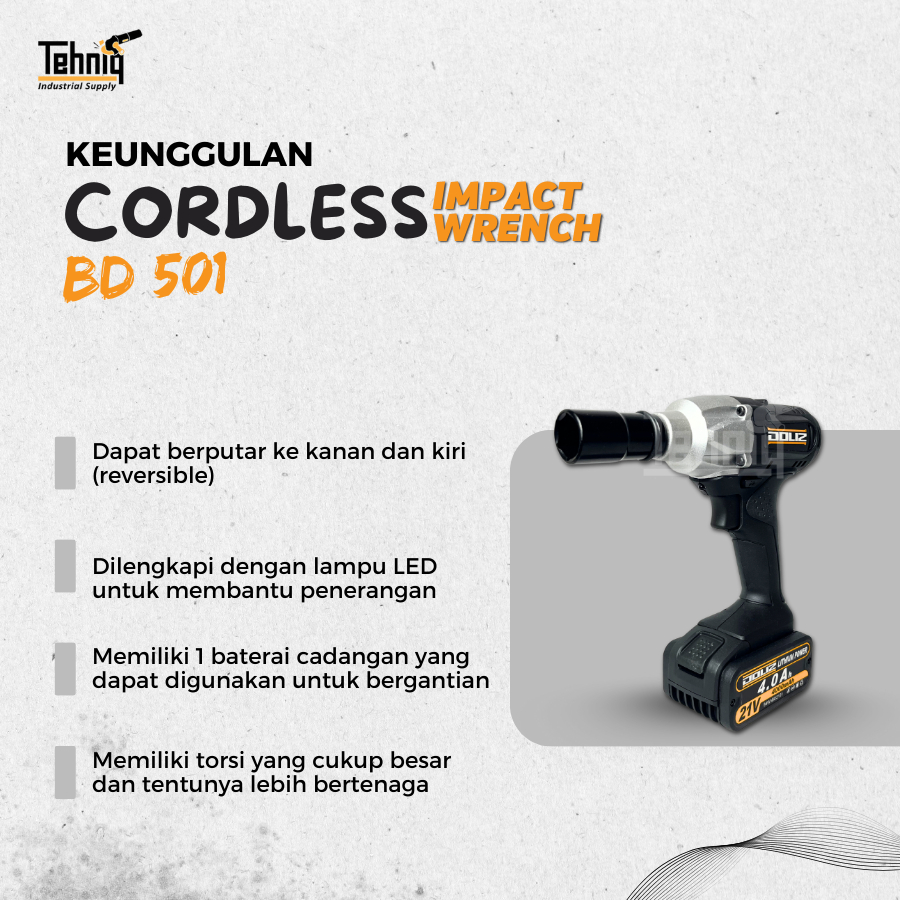 Mesin Bor Buka Tutup Baut BD 501 DOLIZ Cordless Impact Wrench BD501 21 Volt