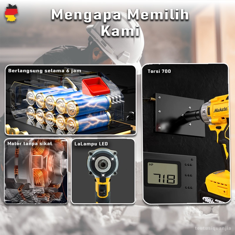 Mukete 298V/398V/598V impek baterai impact wrench impact baterai impact cordless mesin impact Mobil Impact Baterai Mesin