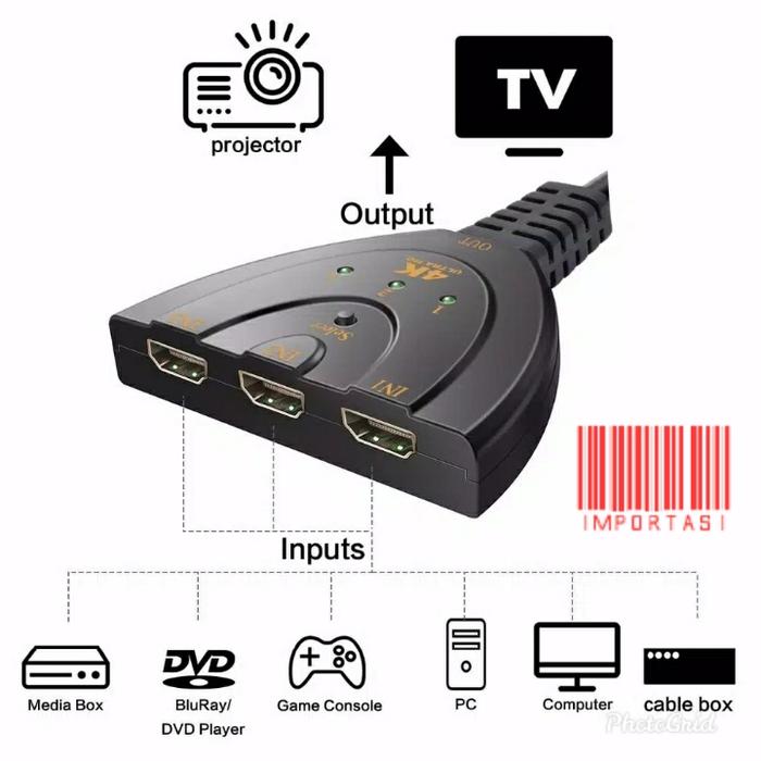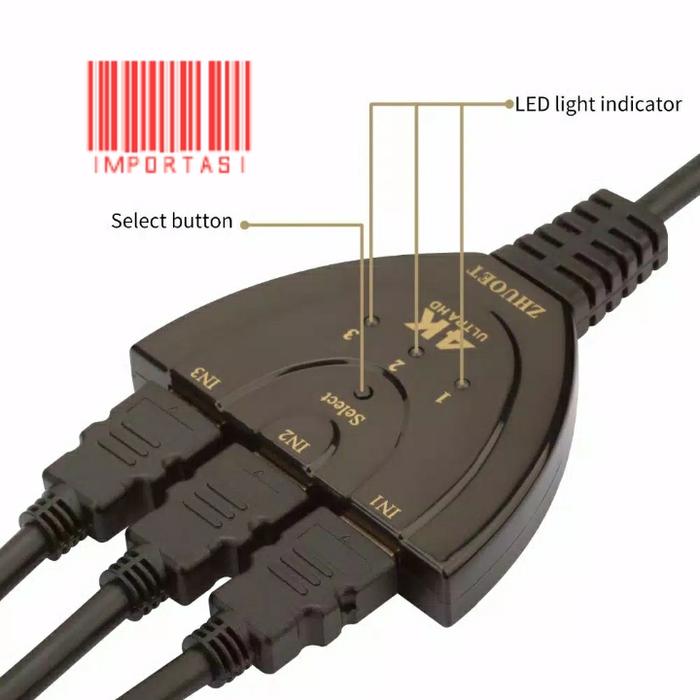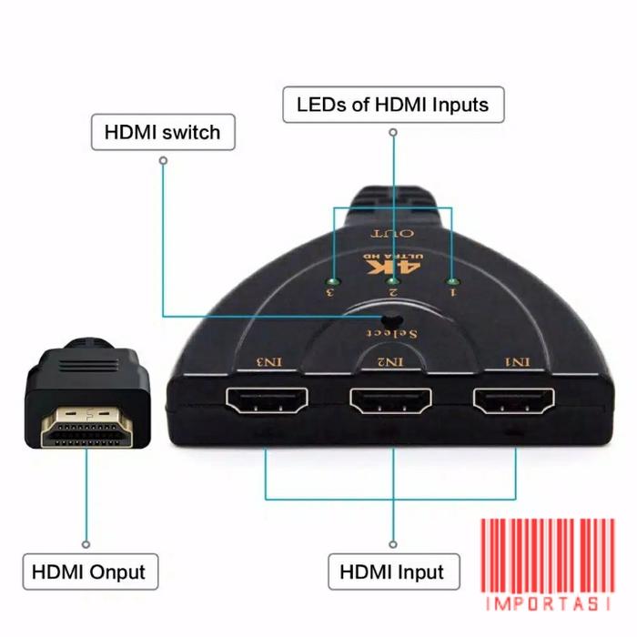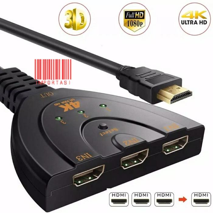 PROMO TERBATAS SWITCHER HDMI 3 PORT 4K 3D 3 INPUT 1 OUTPUT SWITCH CABLE