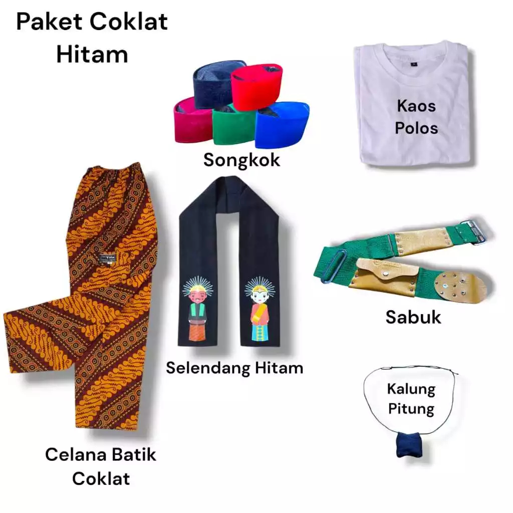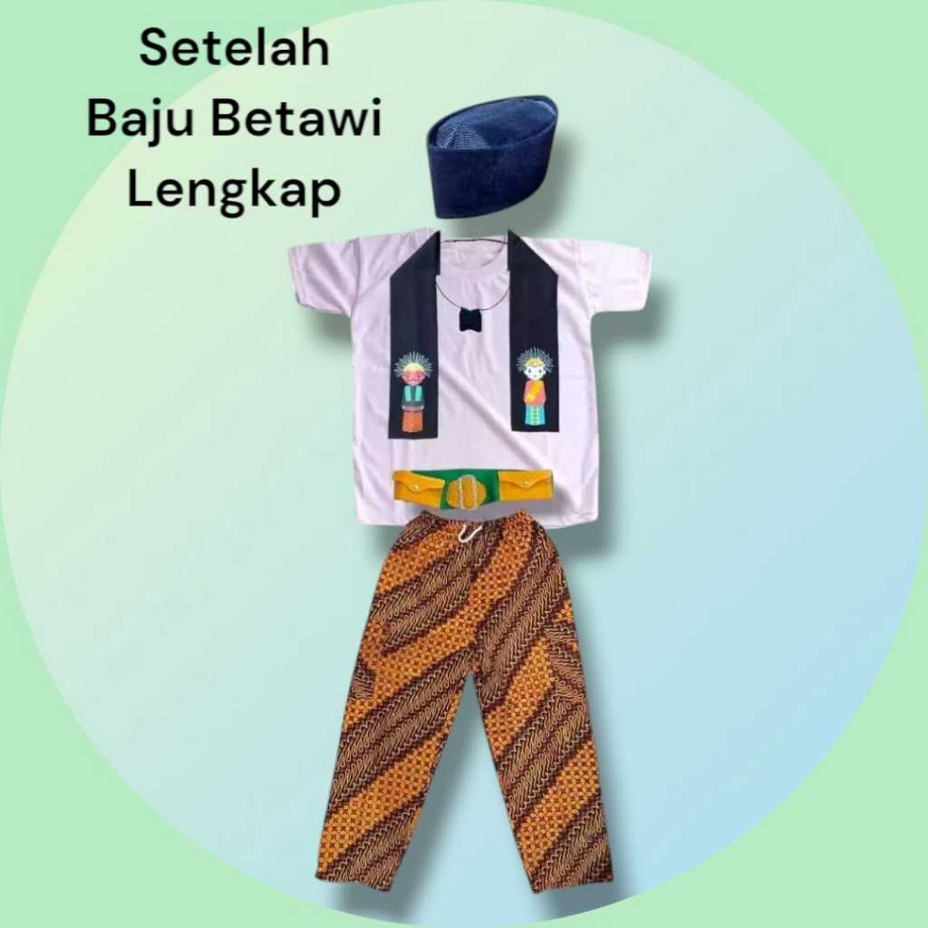 Setelan Baju Adat Betawi Anak Dan Dewasa Lengkap Paket Celana Batik Selendang Ondel Dapat Kaos