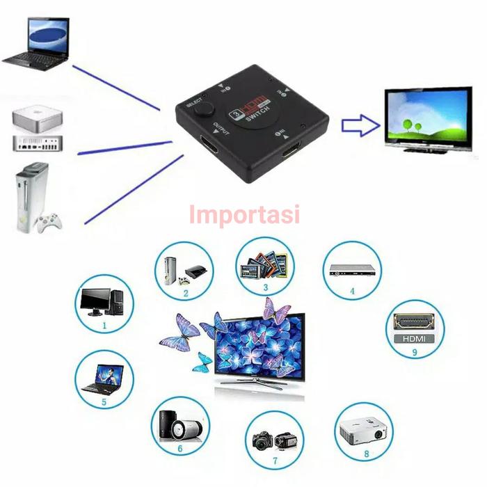PROMO TERBATAS HDMI SWITCHER 3 PORT HUB SPLITTER HDTV 1080 HD SWITCH