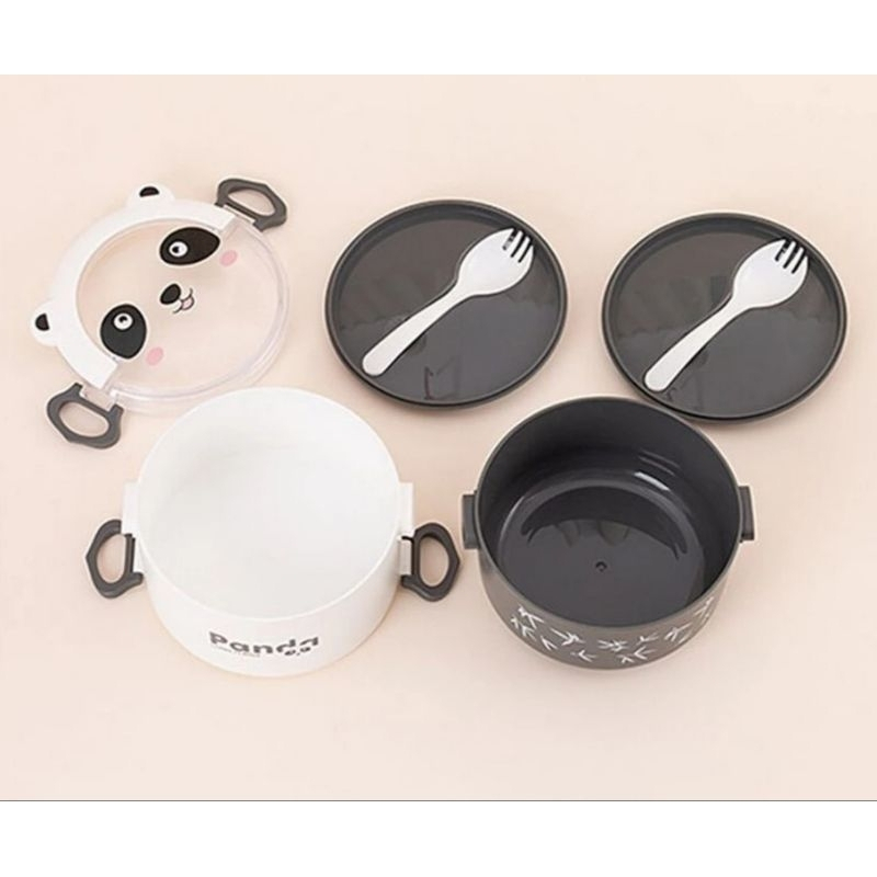 Rantang Bulat 2 Tingkat Panda Bears Lunchbox Panda Bears Free Sendok Garpu