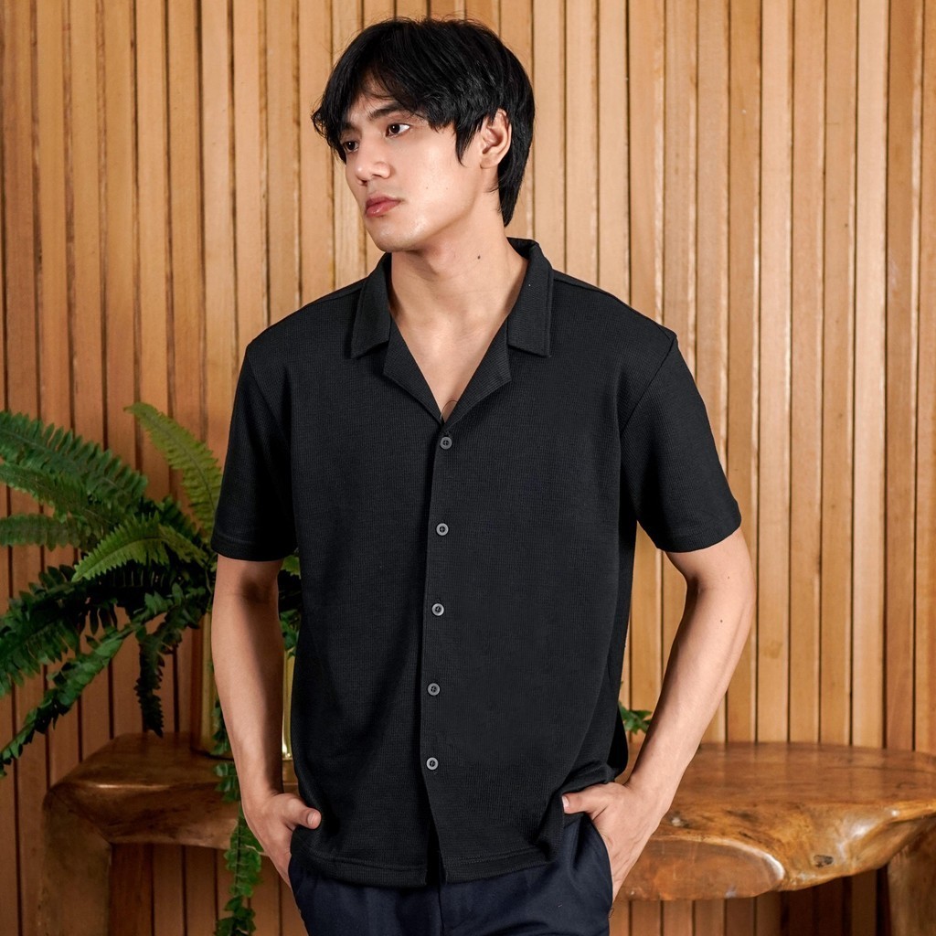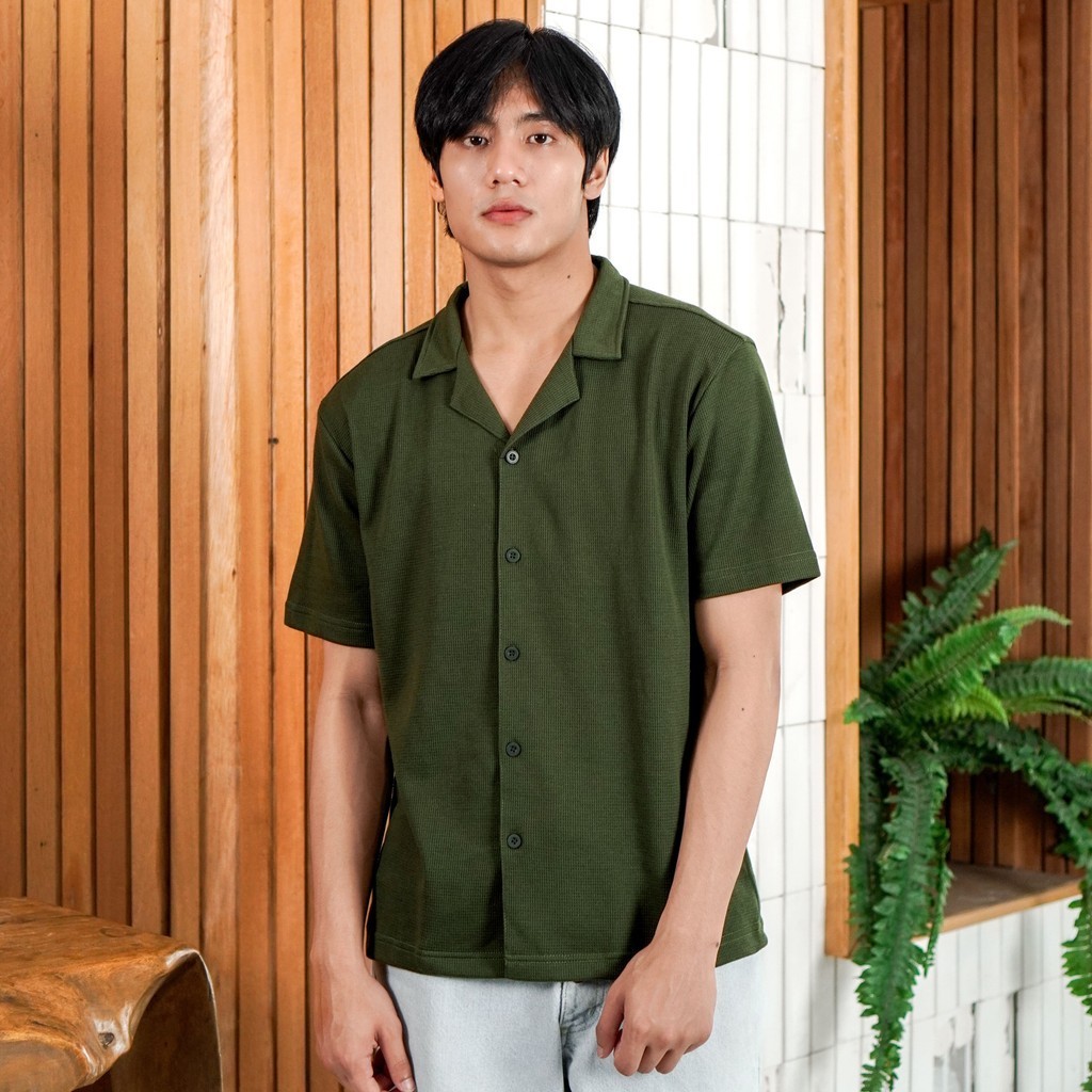 Matsuda Kemeja Pria Lengan pendek Waffle Kasual Sagae