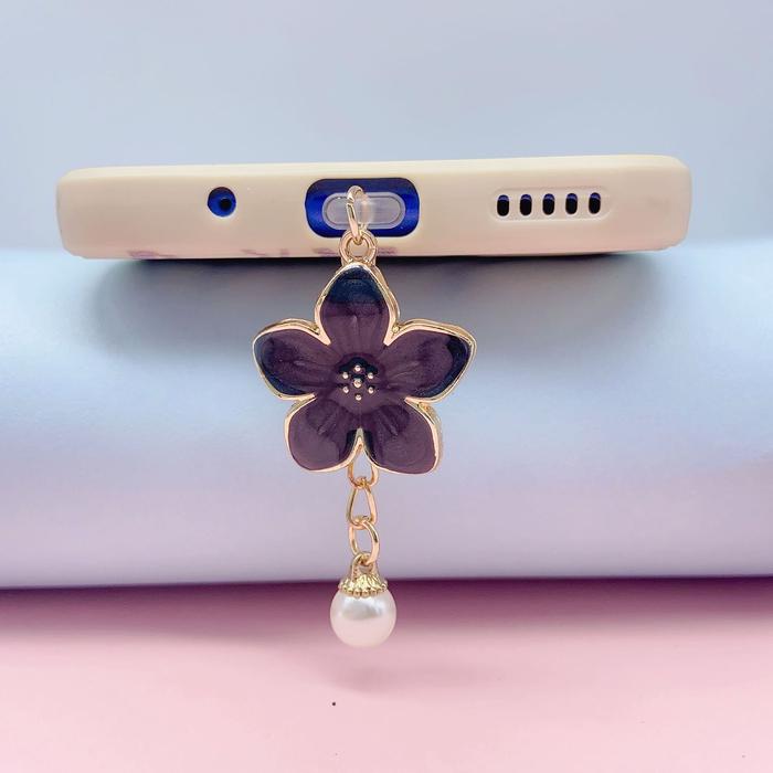 FLASH SALE PENUTUP LUBANG CAS HP IPHONE&ANDROID PENUTUP LUBANG EARPHONE ANTI DEBU DAN AIR MOTIFK BUNGA BUNGA HITAM 2 ITE