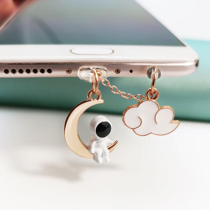FLASH SALE PENUTUP LUBANG CAS HP IPHONE&ANDROID PENUTUP LUBANG EARPHONE ANTI DEBU DAN AIR MOTIFK ASTRONAUT ASTRONAUT BUL