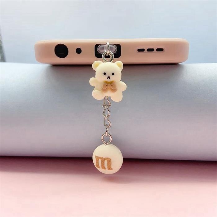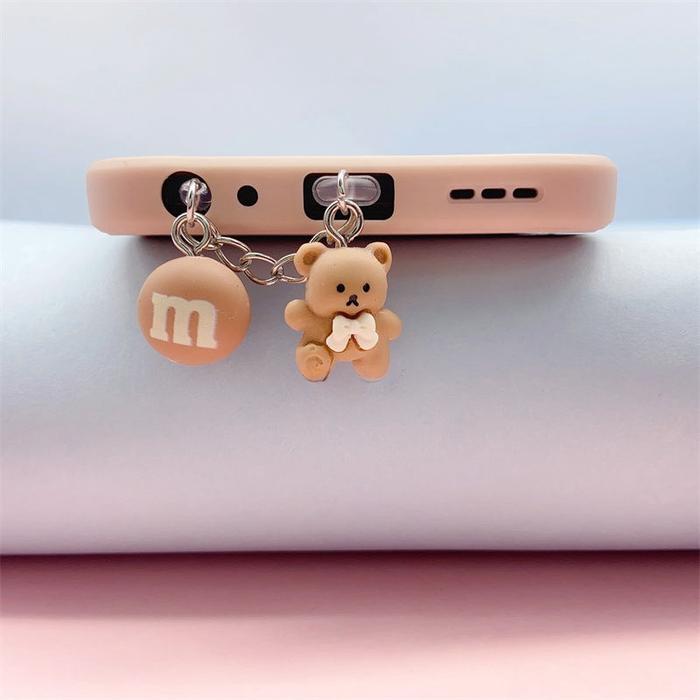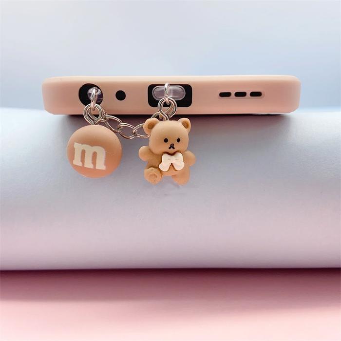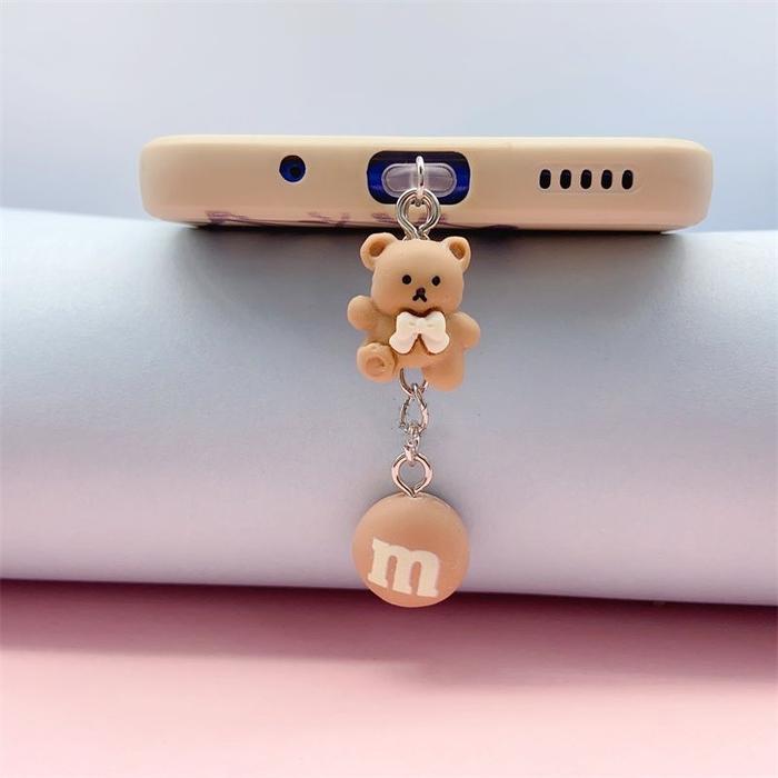 FLASH SALE PENUTUP LUBANG CAS HP IPHONE&ANDROID PENUTUP LUBANG EARPHONE ANTI DEBU DAN AIR MOTIFK BEAR BEAR COKLAT 2 ITEM