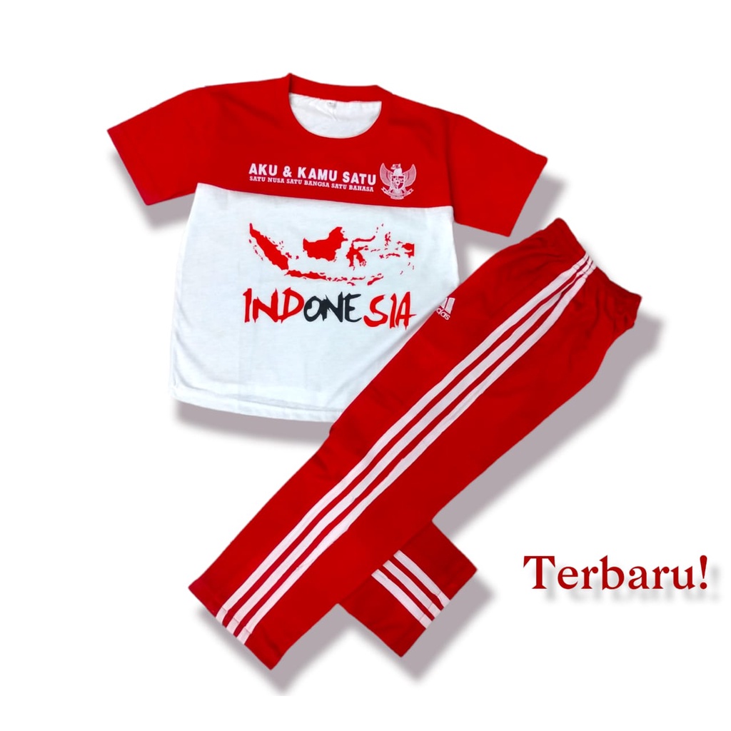 Setelan anak merah putih bergambar terbaru/pakaian anak usia 6 sampai 12 tahun termurah