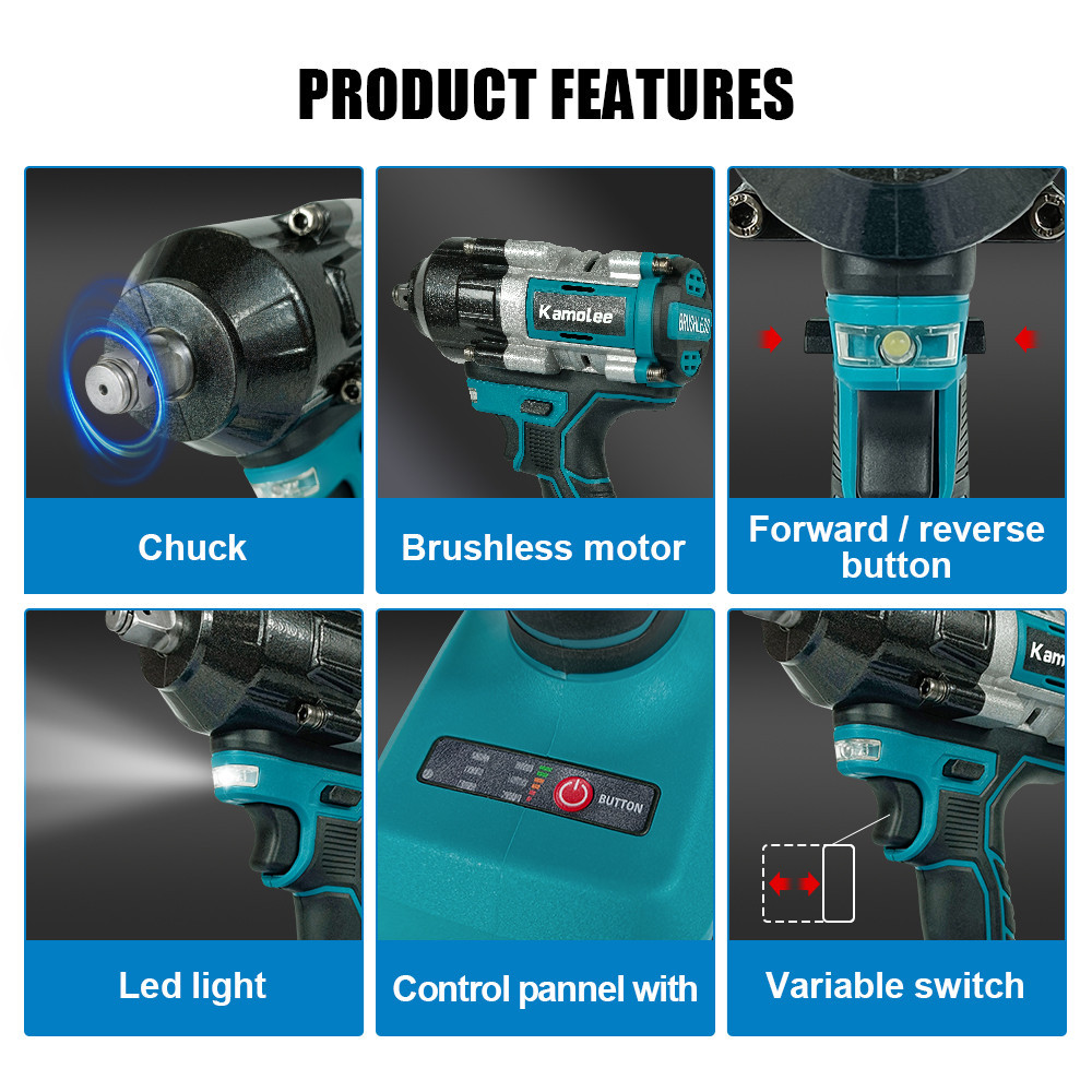 Kamolee DTW800 2100N.M Impact Wrench 1/2" [Kompatibel Dengan Baterai Makita/JLD]