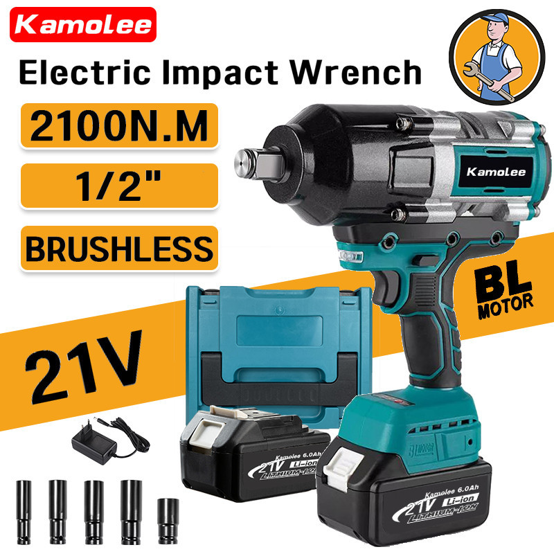 Kamolee DTW800 2100N.M Impact Wrench 1/2" [Kompatibel Dengan Baterai Makita/JLD]