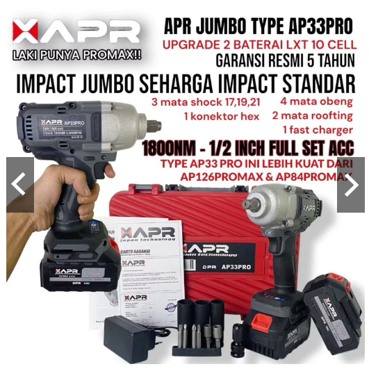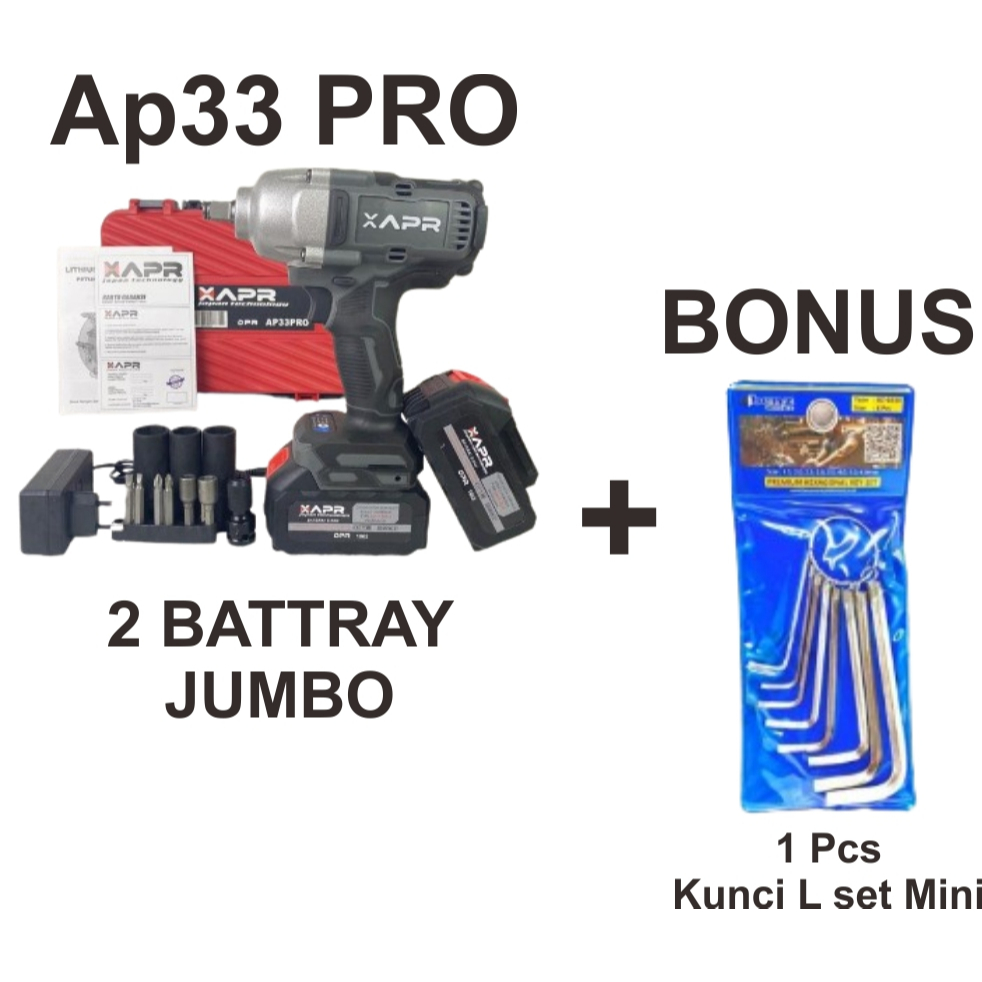 BONUS KUNCI L SET MINI APR AP33PRO MESIN IMPACT WRENCH PEMBUKA BAUT MOTOR MOBIL JUMBO 1800NM 2 BATERAI MURAH BERKUALITAS