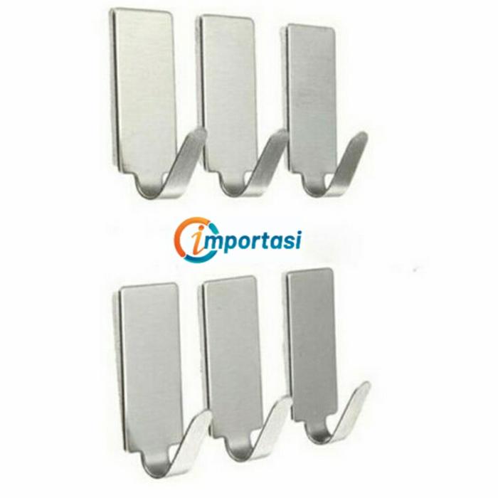 PROMO TERBATAS GANTUNGAN HOOK STAINLESS SERBAGUNA 6 PCS TEMPEL DINDING TANPA PAKU