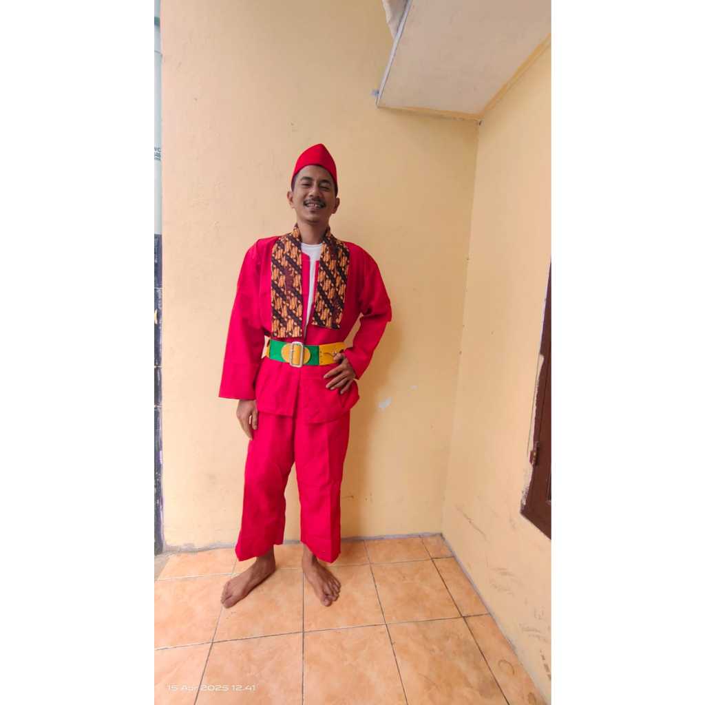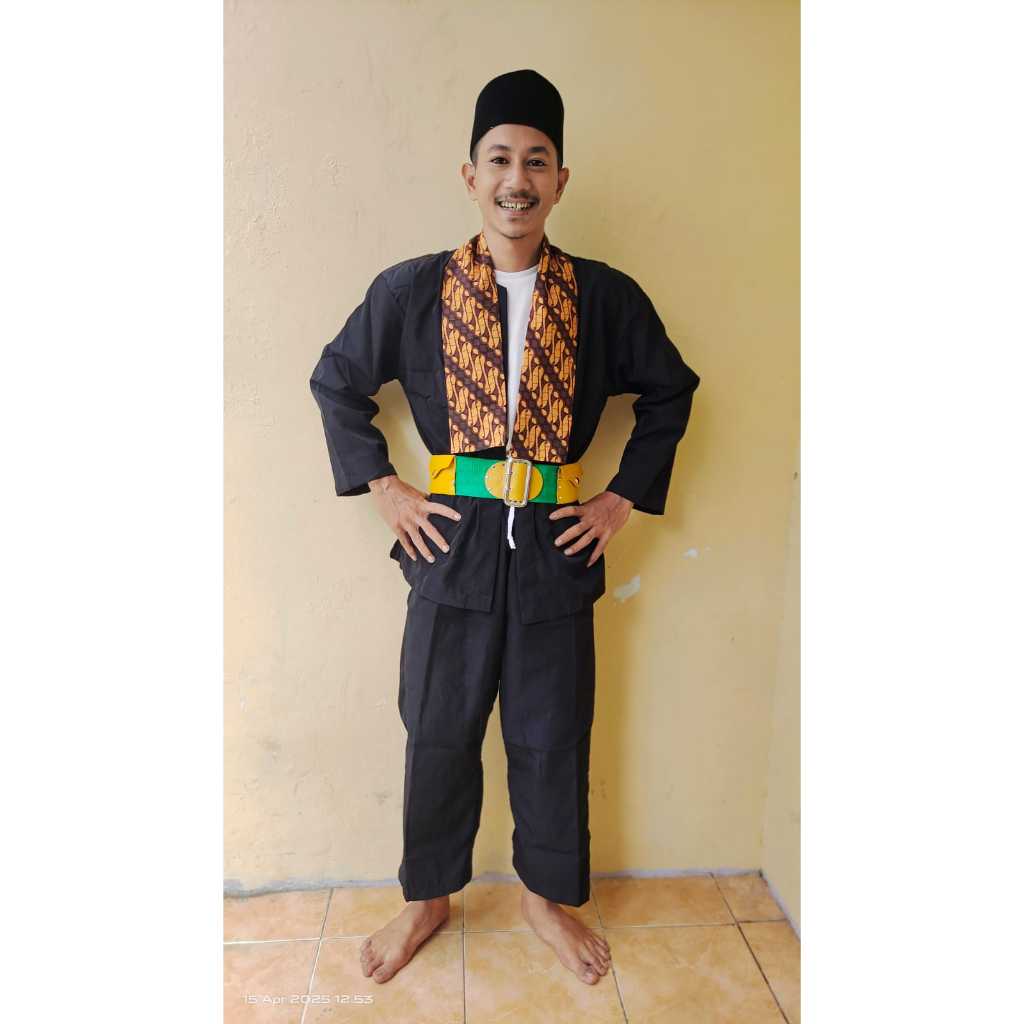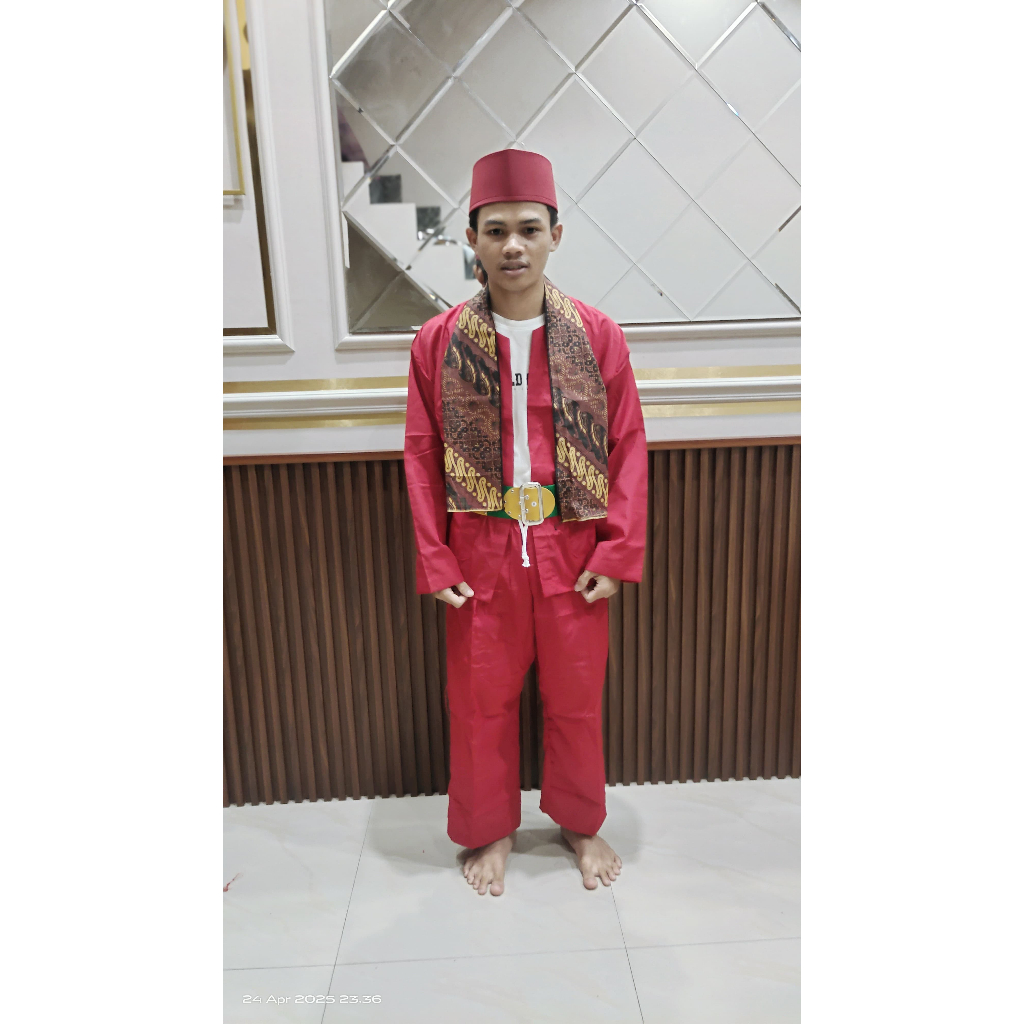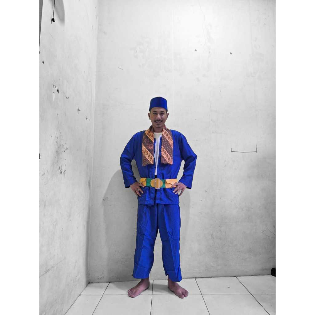 Baju Pangsi Dewasa Pakaian Adat Betawi Tradisional Setelan Sabuk Peci Selendang