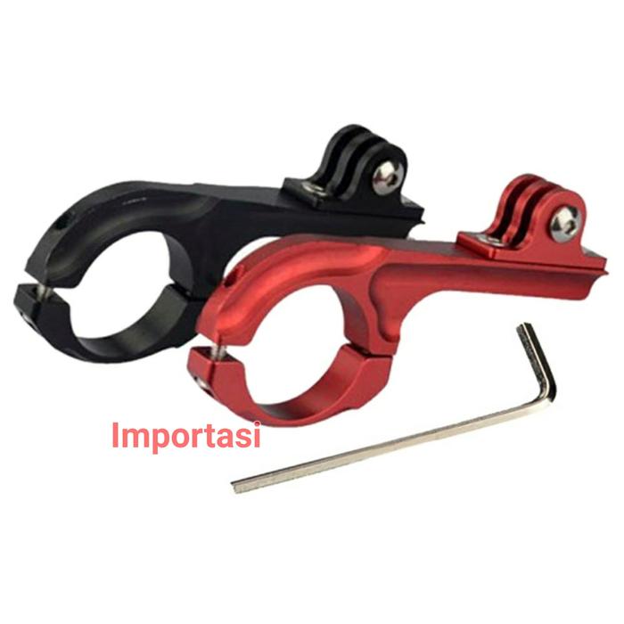 PROMO TERBATAS BRACKET HOLDER GOPRO OSMO ALUMUNIUM MOUNT STANG MOTOR SEPEDA SCOOTER HITAM
