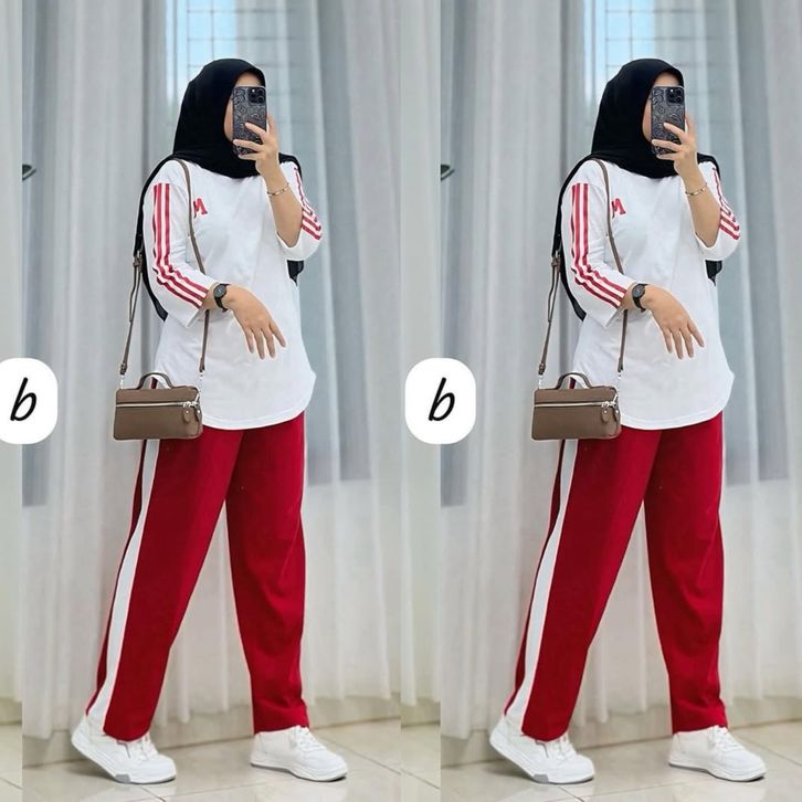 Setelan Wanita Merah Putih HUT RI 80 Bahan Combed Mix Jeans Set Kemerdekaan 17an Terbaru I Hut RI