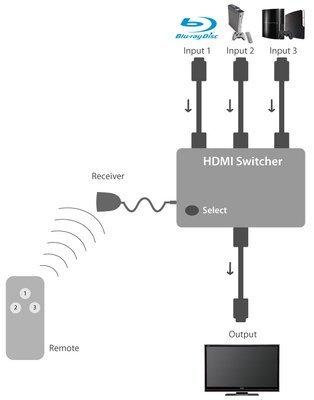 FLASH SALE HDMI SWITCH 3 PORT FULL HD 1080P WITH REMOTE CONTROL BLACK