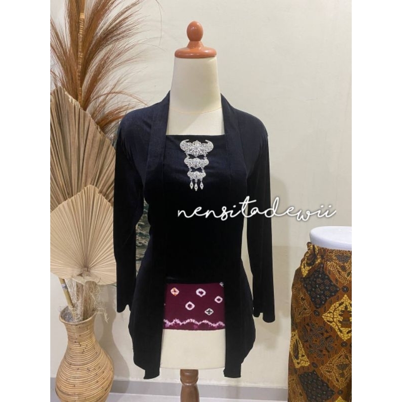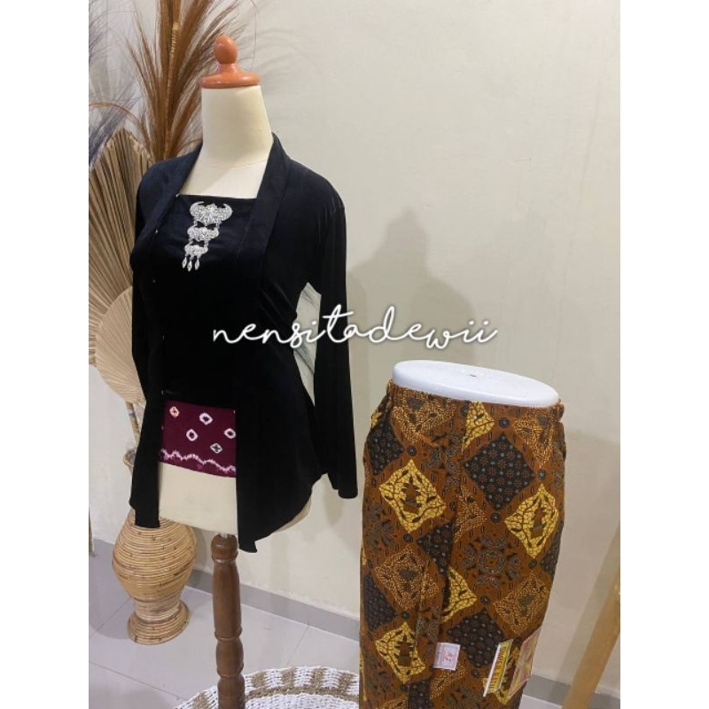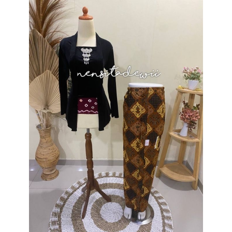 [1 SET, Hitam] Kebaya Kutubaru + Jarik Wiru Instan / Motif Seno Mukti