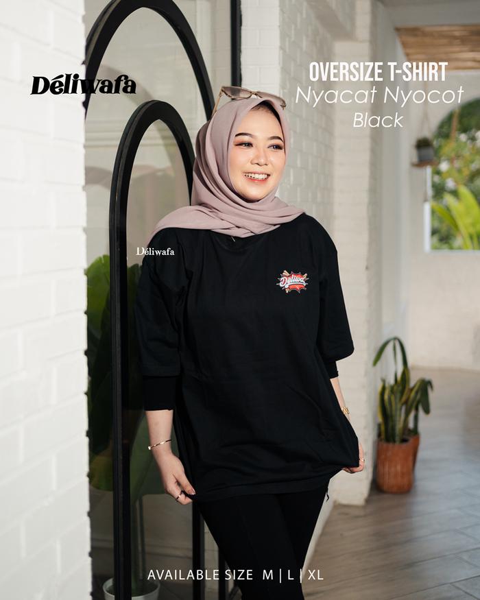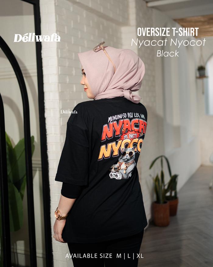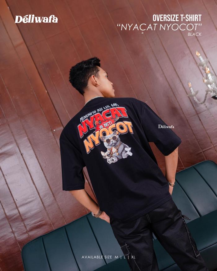 Deliwafa - Nyacat Nyocot | T-Shirt Oversize | Kaos Lengan Pendek | Baju Pria Wanita AP200