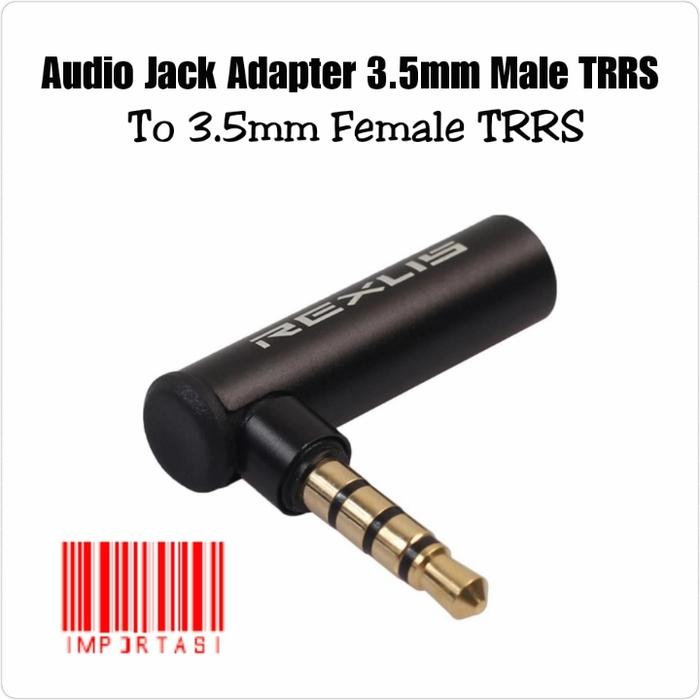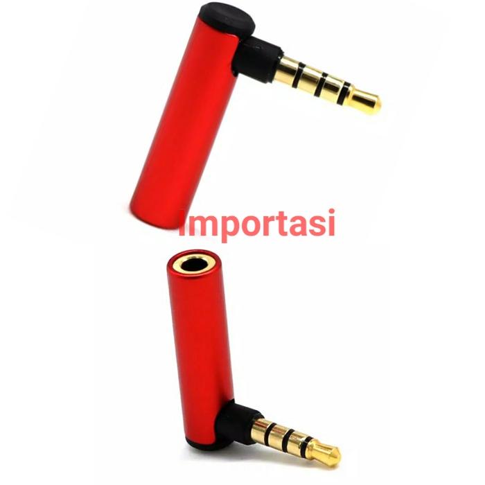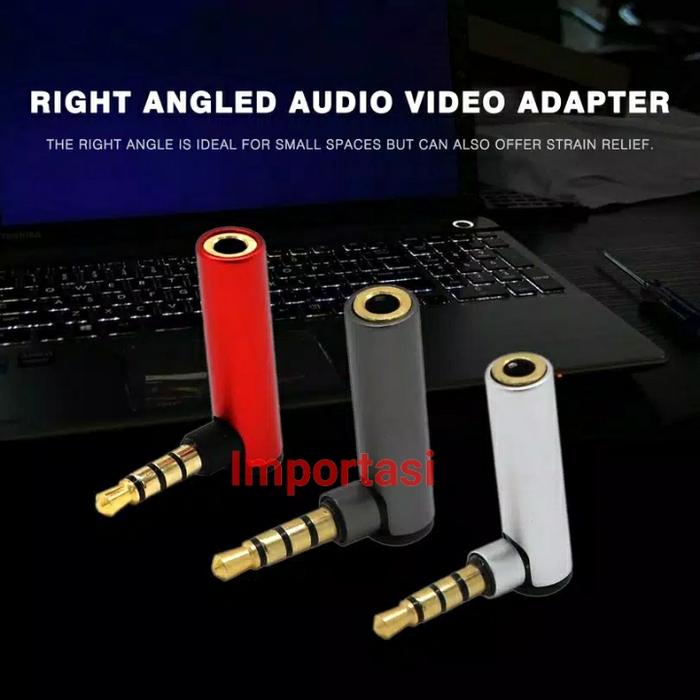 PROMO TERBATAS AUDIO JACK ADAPTER 35MM MALE TO 35MM FEMALE L 90 DERAJAT TRRS AUX HITAM