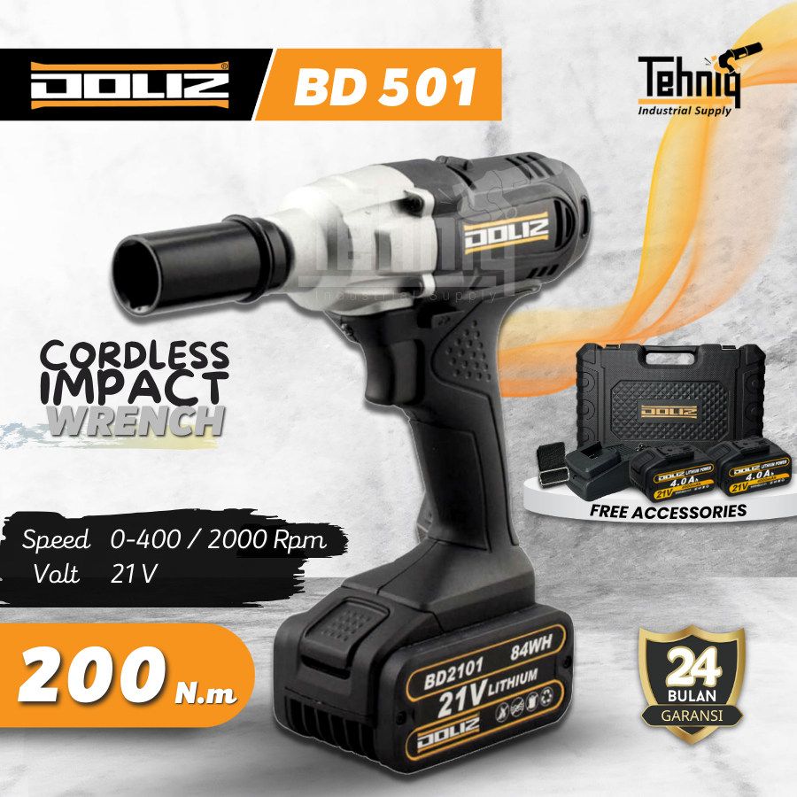 Mesin Bor Buka Tutup Baut BD 501 DOLIZ Cordless Impact Wrench BD501 21 Volt