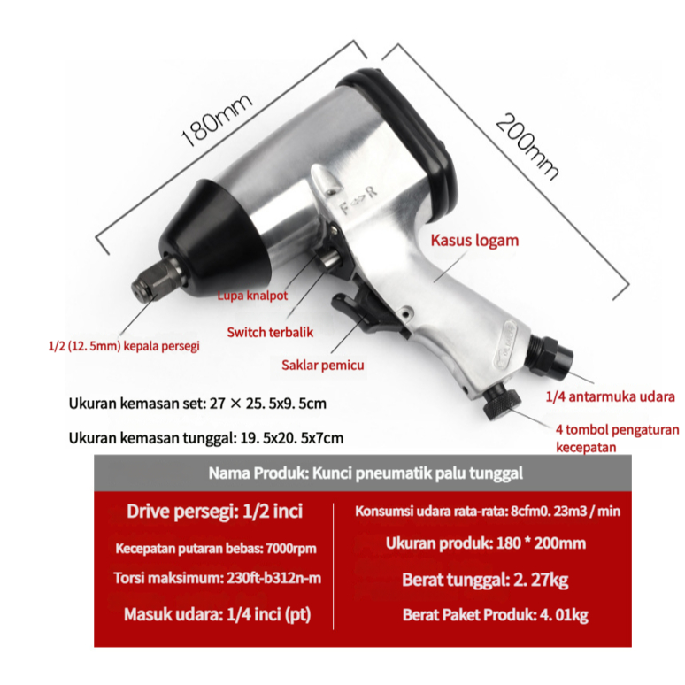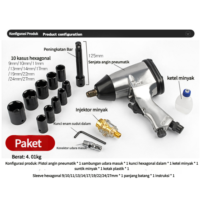 Air Impact 1/2" Mollar Mesin Buka Baut Kompresor Impact Wrench Set 1/2 Inch Mollar