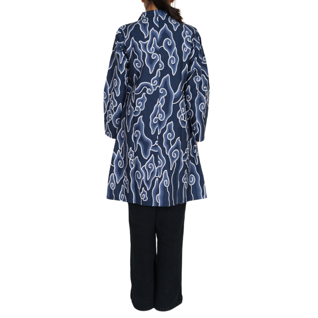 BATIK TRUSMI Tunik Batik Atasan Wanita Batik Mega Mendung Belvina Navy RML