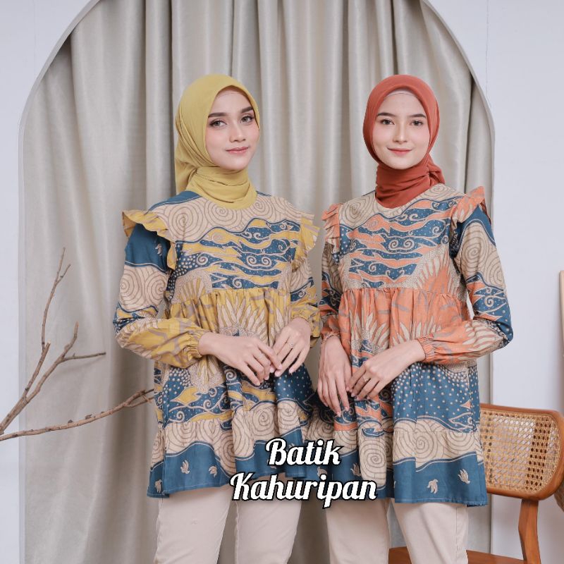 Baju Batik Wanita Lengan Panjang Atasan Batik Wanita Susun Rempel Motif Mega Mendung By Batik Kahuripan