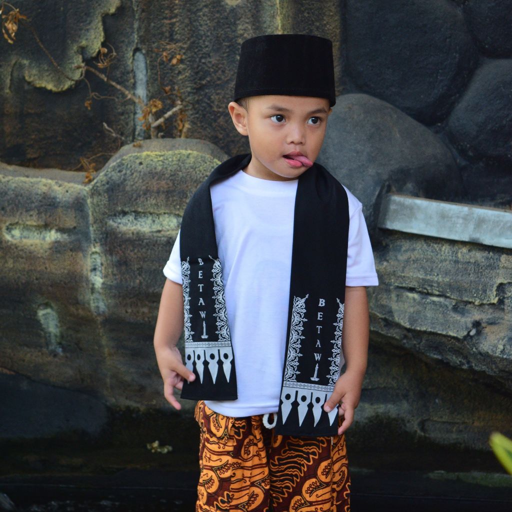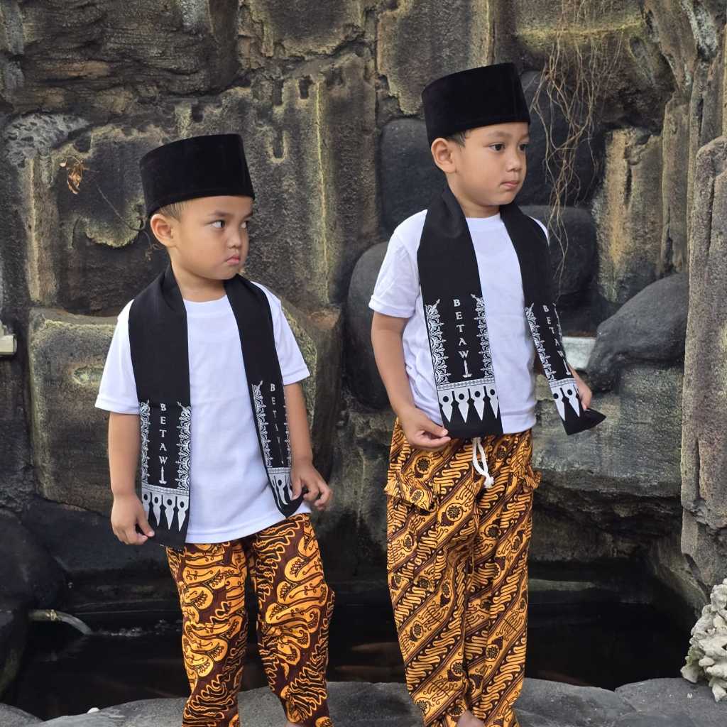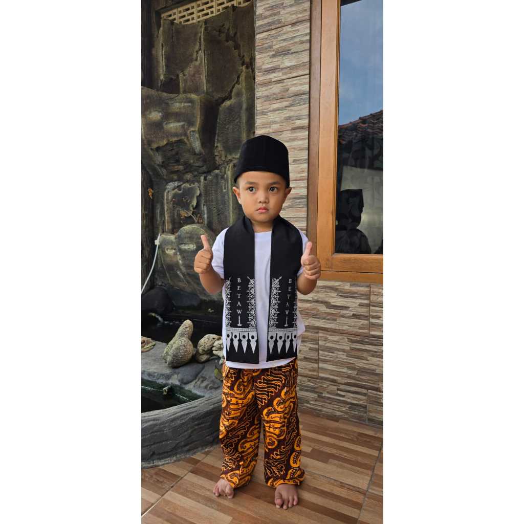 Paket Baju Betawi Anak Celana+Baju+Peci+SelendangPakaian Adat Betawi Anak
