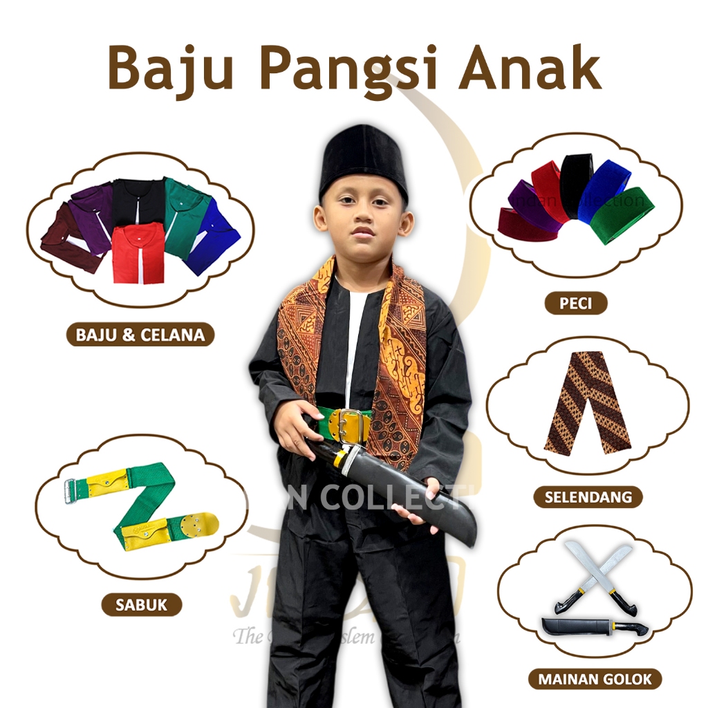 Baju Pangsi Anak Betawi Lengkap Setelan Pangsi Anak Peci Sabuk Selendang Kaos