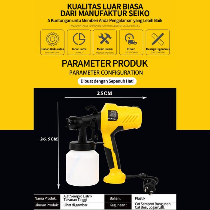 PROMO TERBATAS SPRAY ALAT PAINT SEMPROT LISTRIK KAPASITAS 800ML DAYA MASUKAN 400 WATT KUNING 400W