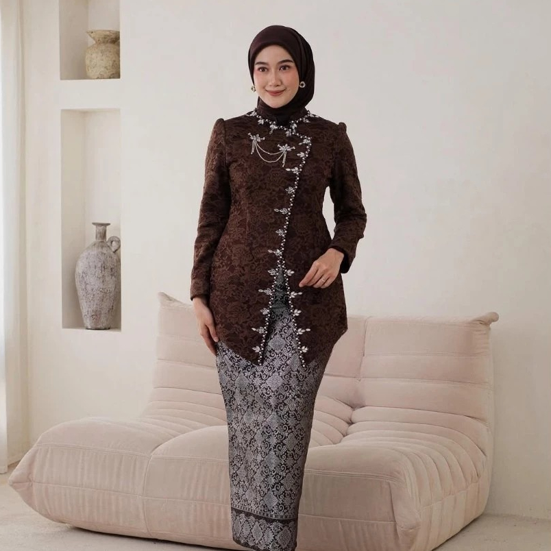 Kebaya Janggan ern Gadis Kretek One Set Bahan Brokat Baju Wisuda Couple Pasangan Terbaru 2025