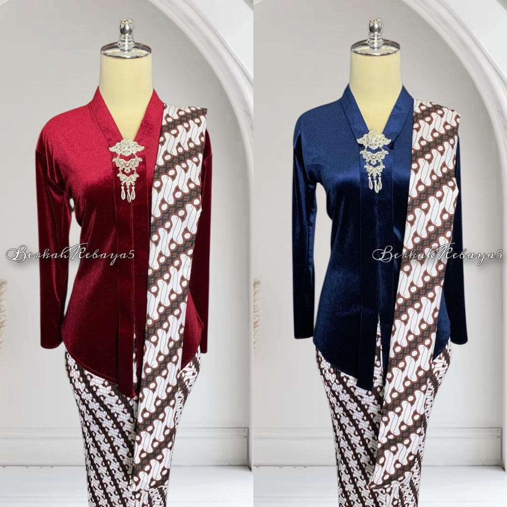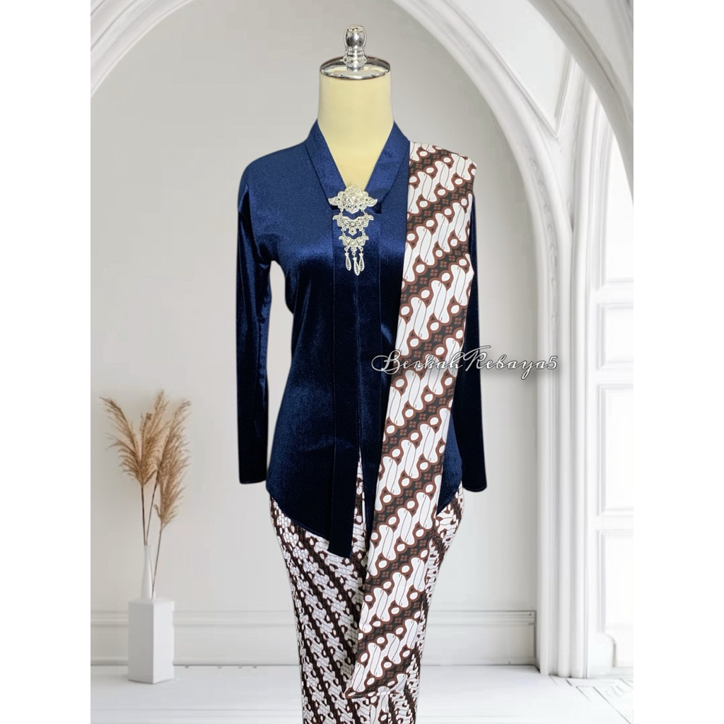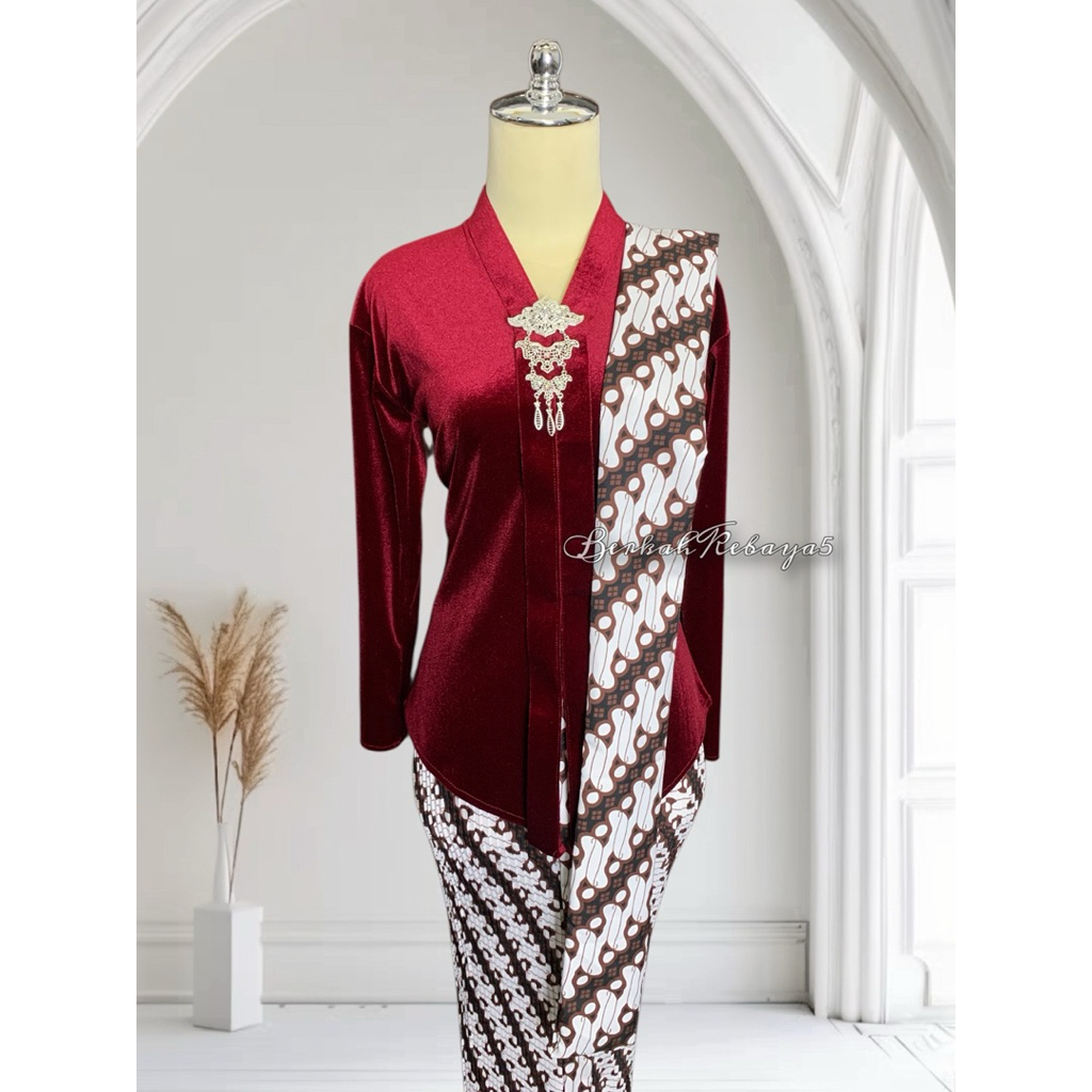 Setelan Kebaya Kartini Encim Bludru / Kebaya + Selendang + Jarik Motif Lereng Parang Barong