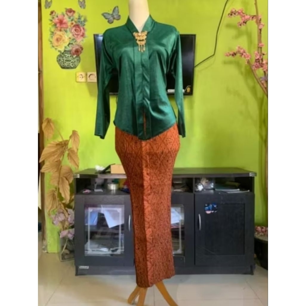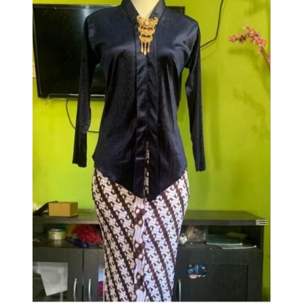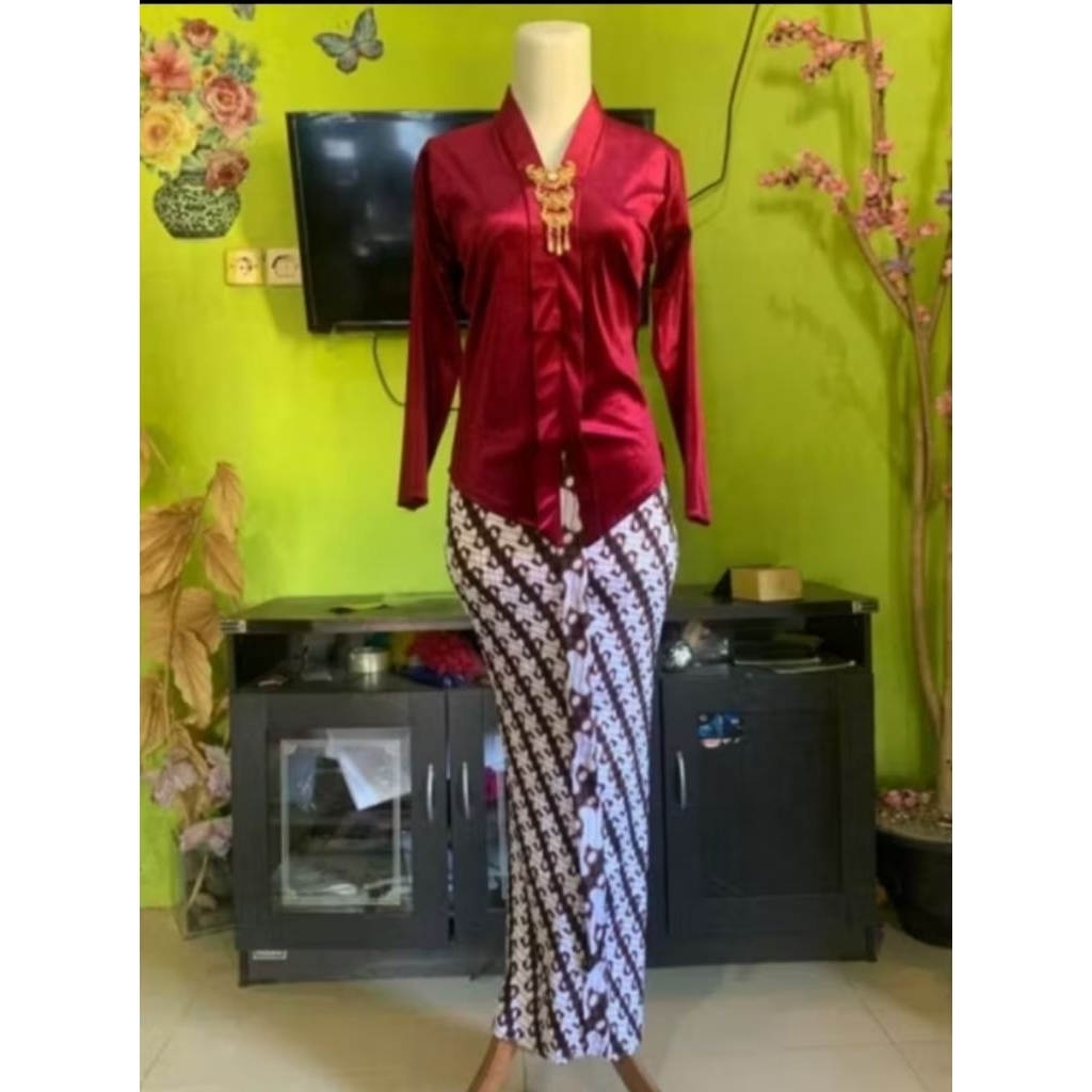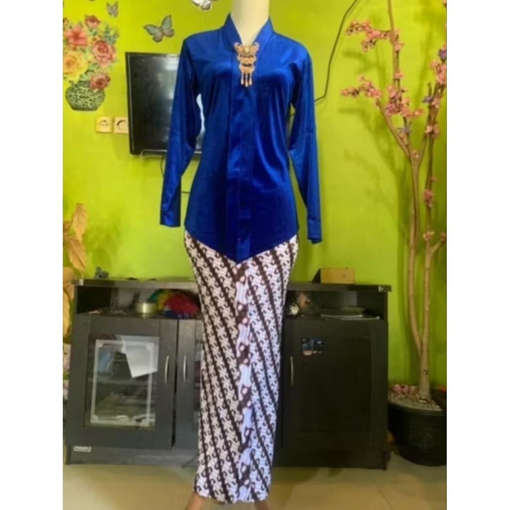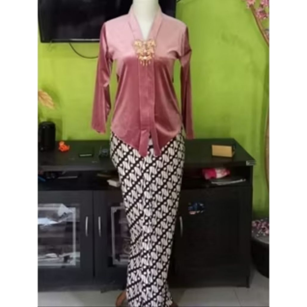 Setelan kebaya bludru Kartini encim dewasa ( kebaya + rok plisket parang )